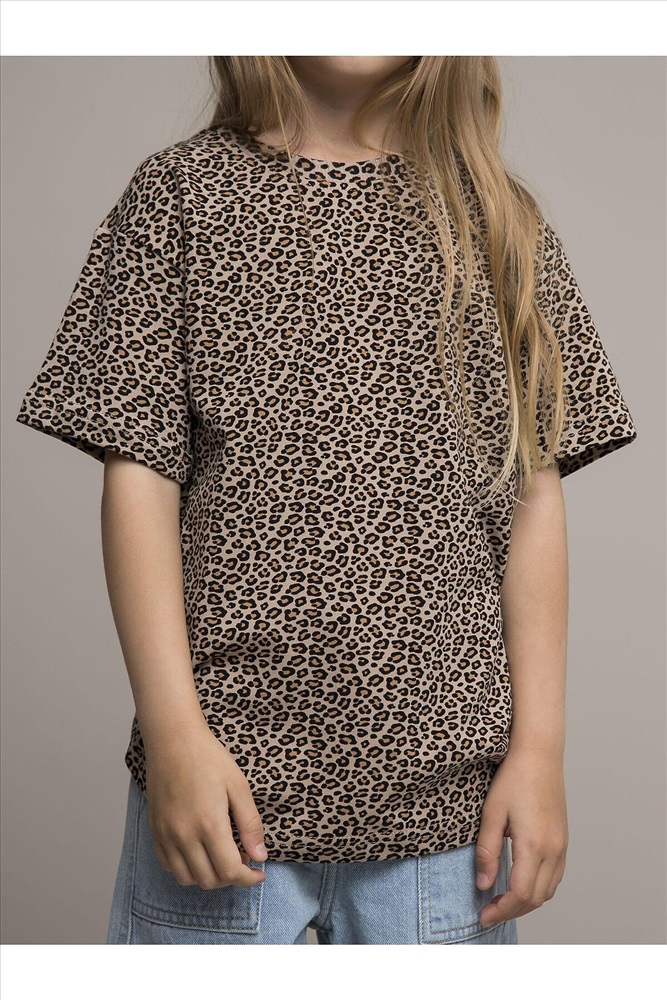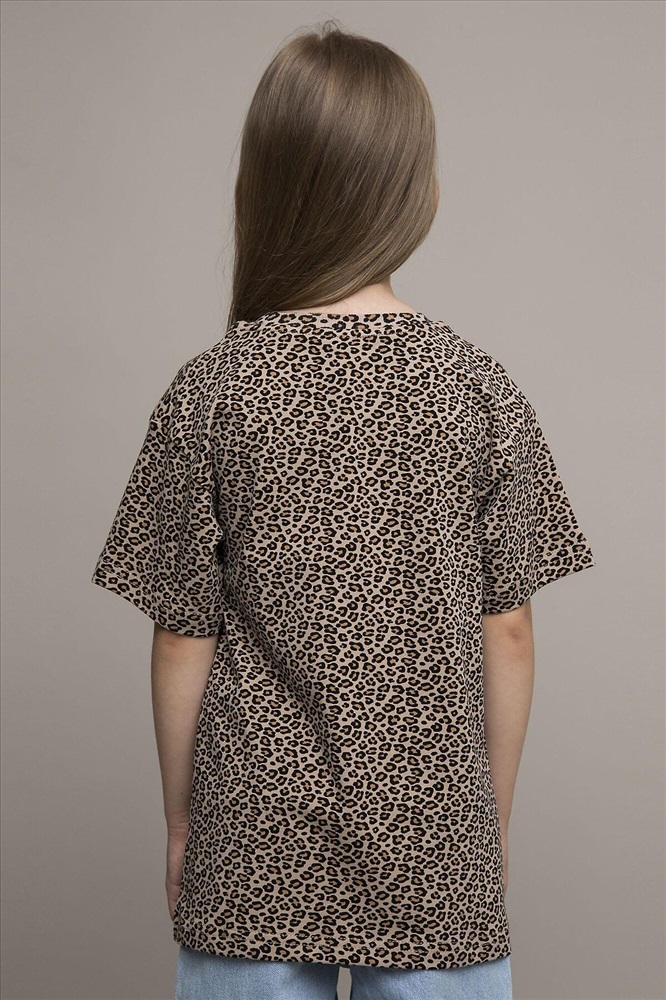 Страна производства: Россия Детская футболка с коротким рукавом с леопардовым принтом для девочек. Стильная и оригинальная футболка, выполненная из премиального супрема. Модный принт придает образу оригинальности и яркости. Удобная округлая горловина и свободный крой для комфорта в движении. Натуральный хлопок обеспечивает воздухообмен и комфорт при носке.