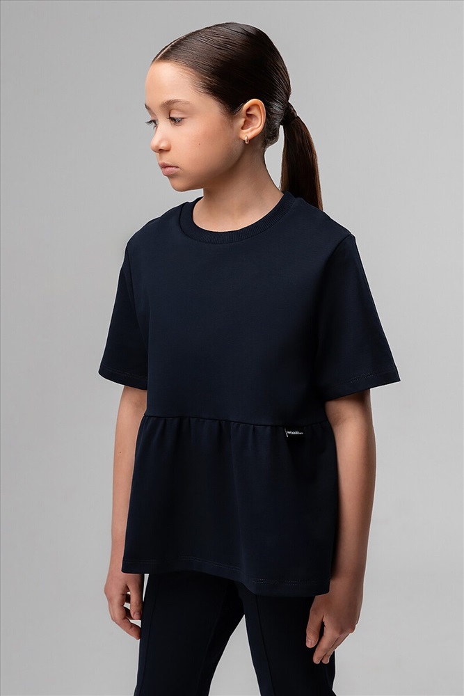 Футболка с баской свободного кроя, короткий рукав.