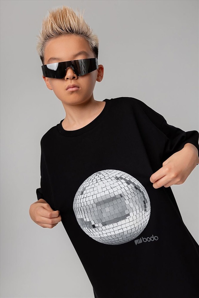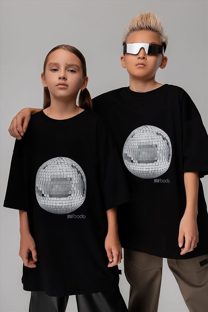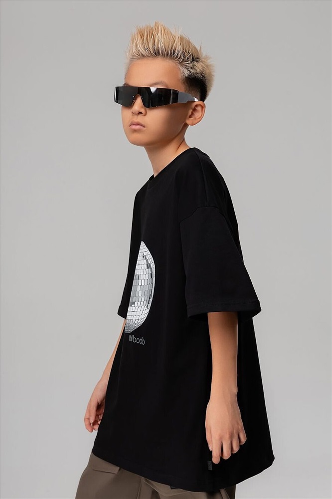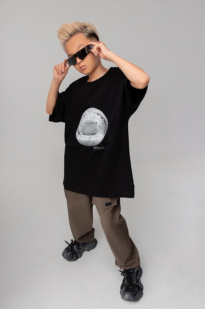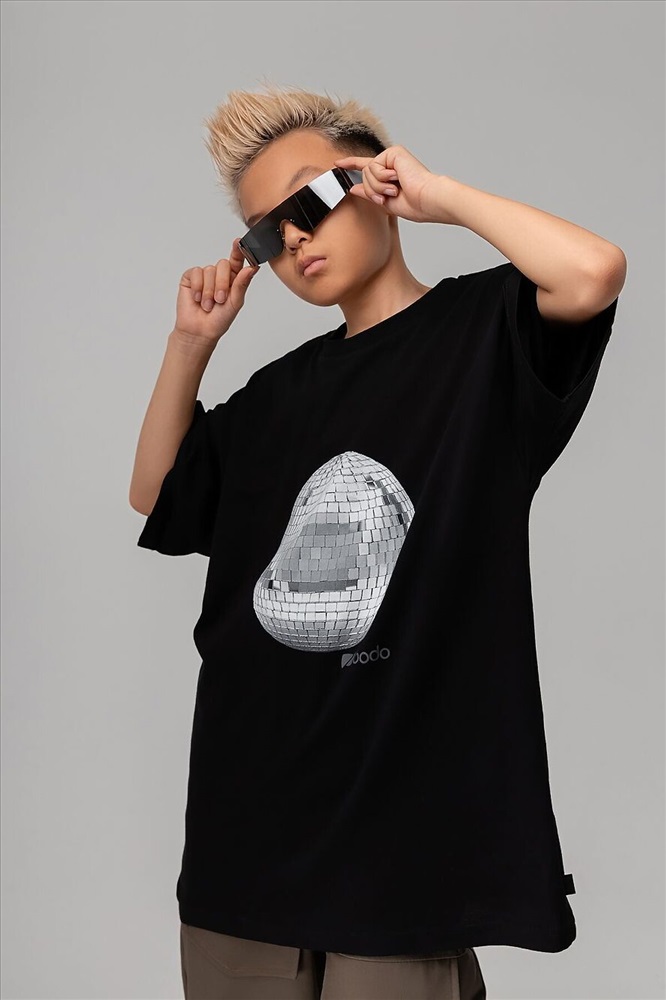Свободная футболка с коротким рукавом. Горловина футболки округлой формы. Низ изделия прямой. Принт на полочке "дискошар" Внимание: в эти города продукция данного бренда не отгружается. Россия: Владивосток, Хабаровск, Махачкала. Казахстан: Павлодар, Семей, Кокшетау, Балхаш, Костанай, Усть-Каменогорск.