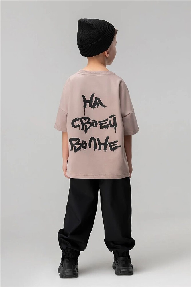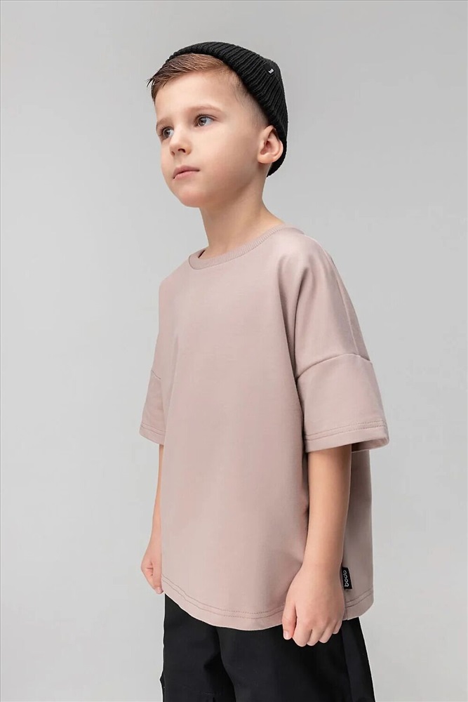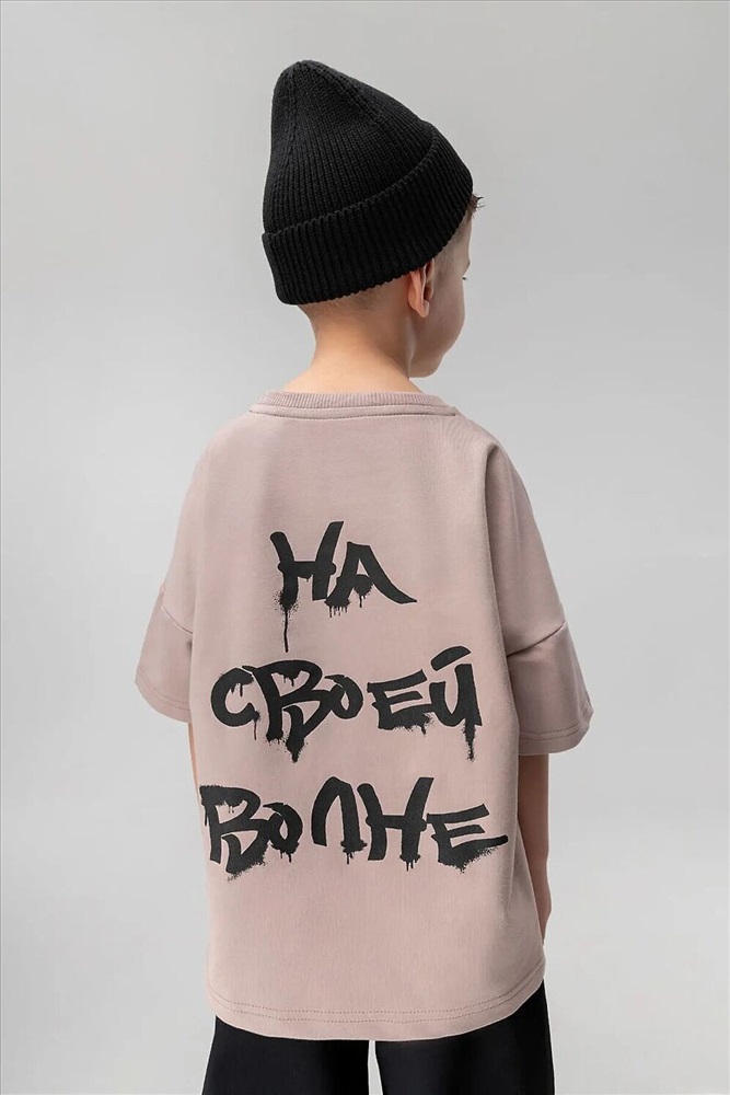 Детская футболка. Детали: короткие рукава, свободный покрой, округлый вырез горловины. Состав: футер двухнитка 92% хлопок 8% лайкра