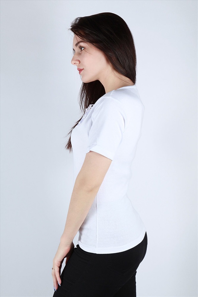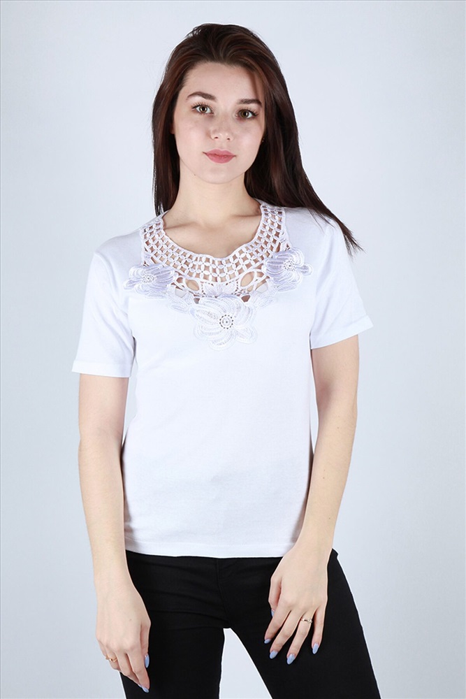 Страна производства: Турция Футболка женская с короткими рукавами. Прямой, полуприлегающий силуэт. Круглый вырез горловины с кружевом. Есть несколько расцветок.