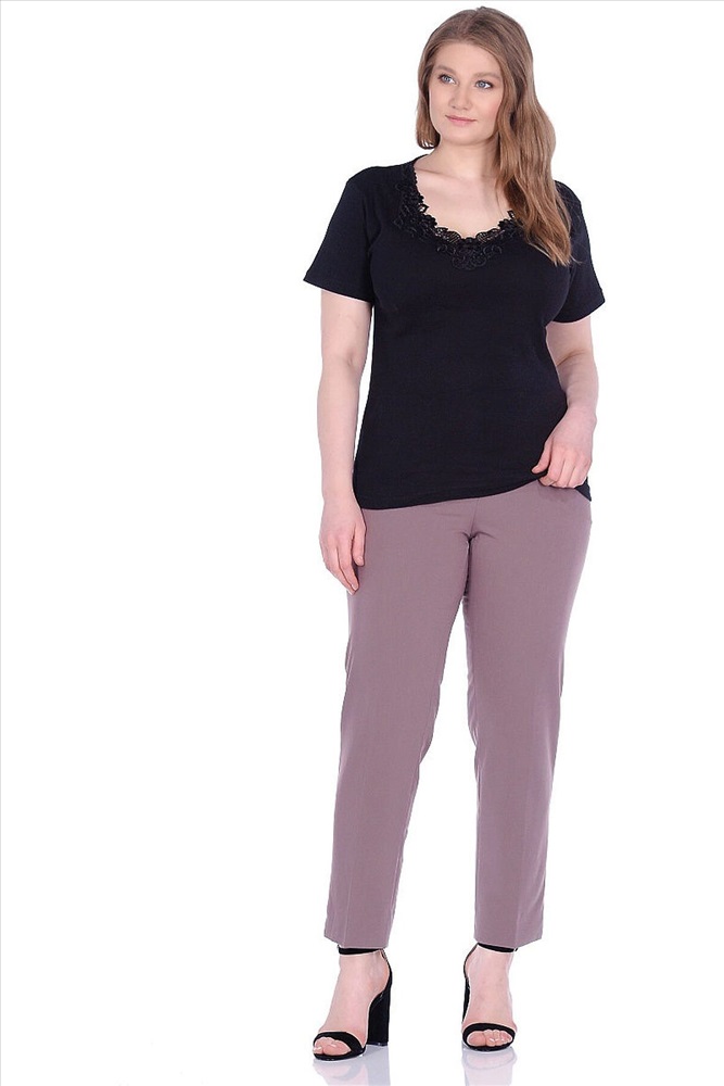 Футболка женская с короткими рукавами. Прямой, полуприлегающий силуэт. V-образный вырез горловины с кружевом. Есть несколько расцветок.