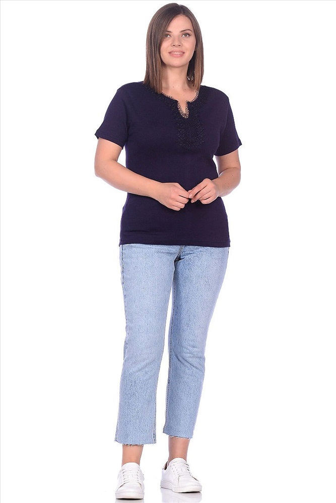 ID товара: 220882 Состав: Хлопок 92%, Эластан 8% Сезон: Демисезон Длина: Средняя Фасон: Полуприлегающий Рукав: Короткий Вид застежки: Нет Вырез горловины: Фигурный Декоративные элементы: Кружево Основная ткань: Хлопок Стиль: Повседневный Страна бренда: Турция Страна производства: Турция Футболка женская с короткими рукавами. Прямой, полуприлегающий силуэт. Фигурный вырез горловины. Комментарии к товару