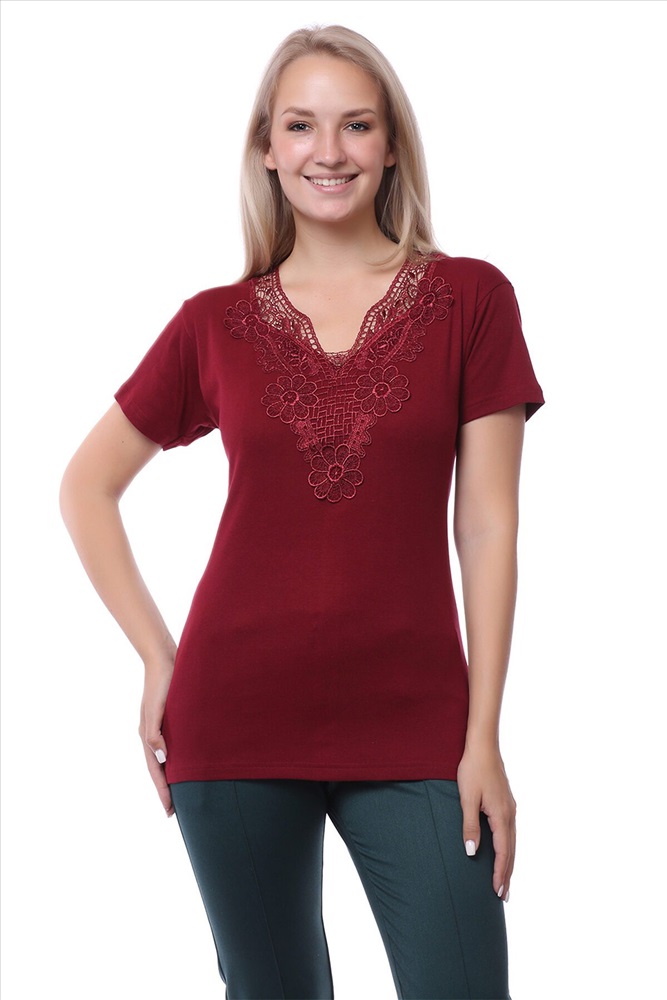ID товара: 692953 Состав: Хлопок 100% Сезон: Демисезон Длина: Средняя Фасон: Полуприлегающий Рукав: Короткие Вид застежки: Без застежки Вырез горловины: Фигурный Рисунок: нет Тип карманов: Без карманов Декоративные элементы: Кружево Основная ткань: Хлопок Стиль: Повседневный Страна бренда: Турция Страна производства: Турция Футболка женская прилегающего силуэта с короткими рукавами. Фигурный вырез горловины, декорированный кружевом. Комментарии к товару