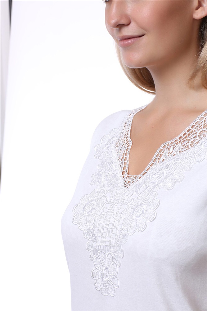 ID товара: 692964 Состав: Хлопок 100% Сезон: Демисезон Длина: Средняя Фасон: Полуприлегающий Рукав: Короткие Вид застежки: Без застежки Вырез горловины: Фигурный Рисунок: нет Тип карманов: Без карманов Декоративные элементы: Кружево Основная ткань: Хлопок Стиль: Повседневный Страна бренда: Турция Страна производства: Турция Футболка женская прилегающего силуэта с короткими рукавами. Фигурный вырез горловины, декорированный кружевом. Комментарии к товару