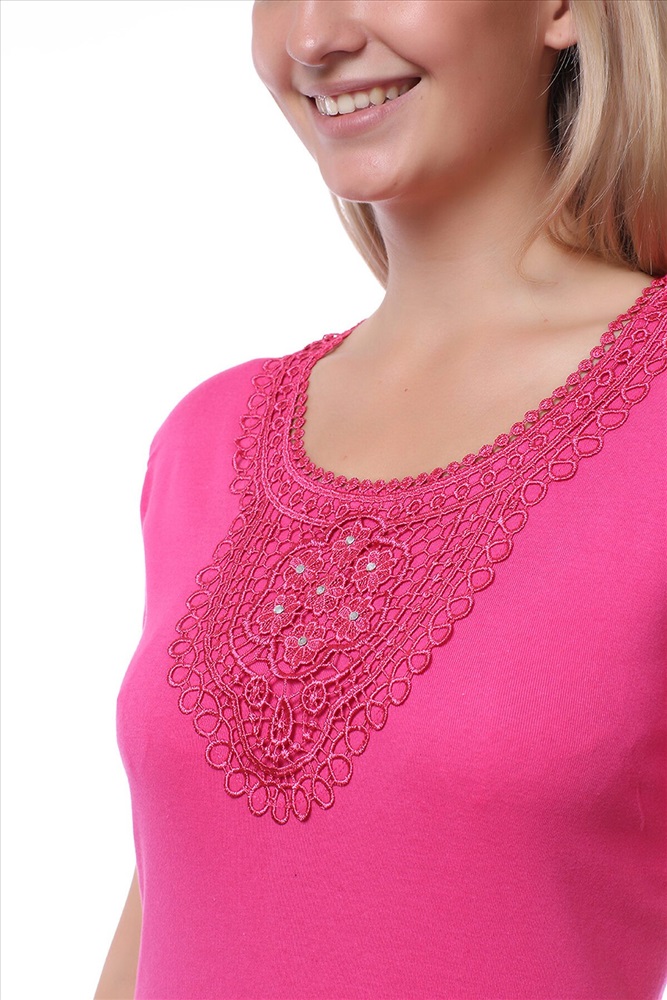 ID товара: 692975 Состав: Хлопок 92%, Эластан 8% Сезон: Демисезон Длина: Средняя Фасон: Полуприлегающий Рукав: Короткие Вид застежки: Без застежки Вырез горловины: Круглый Рисунок: нет Тип карманов: Без карманов Декоративные элементы: Кружево Основная ткань: Хлопок Стиль: Повседневный Страна бренда: Турция Страна производства: Турция Футболка женская, облегающая, с короткими рукавами. Круглый воротник. Комментарии к товару