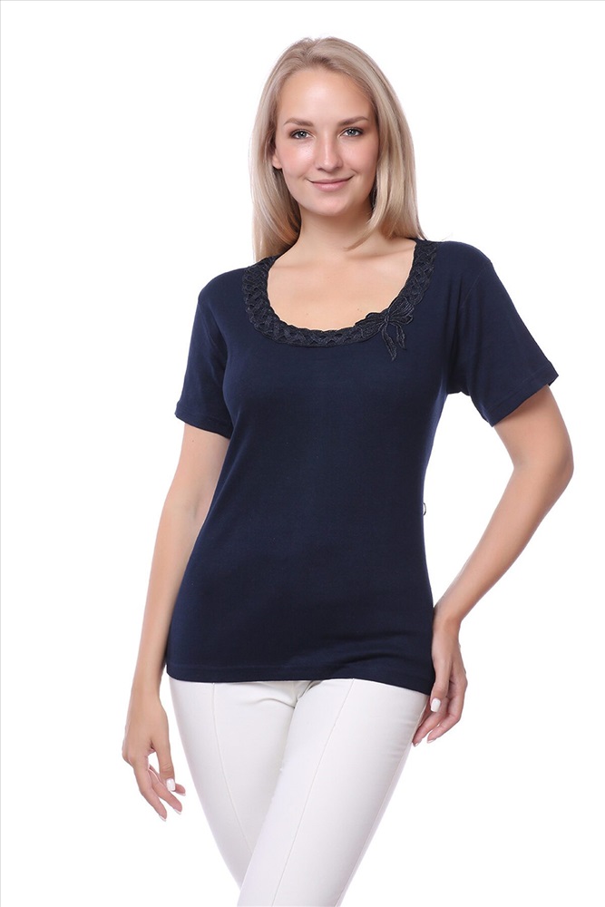 ID товара: 692997 Состав: Хлопок 92%, Эластан 8% Сезон: Демисезон Длина: Средняя Фасон: Полуприлегающий Рукав: Короткие Вид застежки: Без застежки Вырез горловины: Круглый Рисунок: нет Тип карманов: Без карманов Декоративные элементы: Кружево Основная ткань: Хлопок Стиль: Повседневный Страна бренда: Турция Страна производства: Турция Футболка женская облегающая. Имеет круглый вырез, украшенный косичкой из кружева. Комментарии к товару