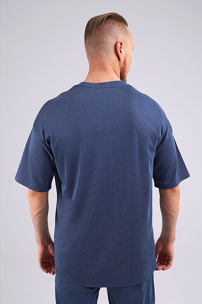 Свободная мужская футболка oversize из фактурного "пике" в составе с хлопком. Изделие с круглым вырезом горловины, со спущенной линией плеча и удлиненным рукавом, дополнено принтом по груди и жаккардовой нашивкой. Модель для тех, кто любит свободный стиль в одежде.