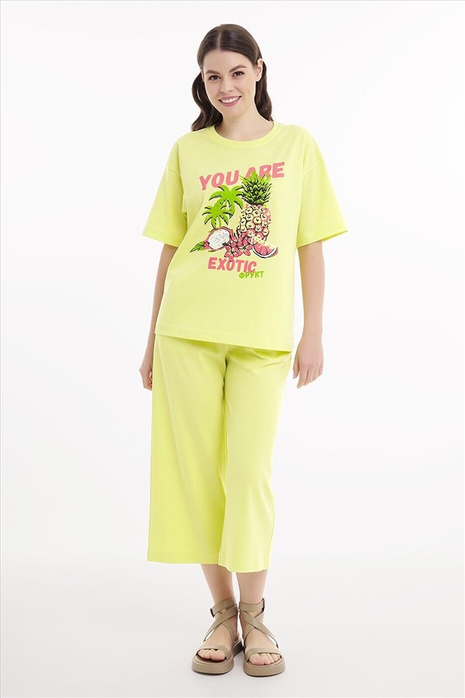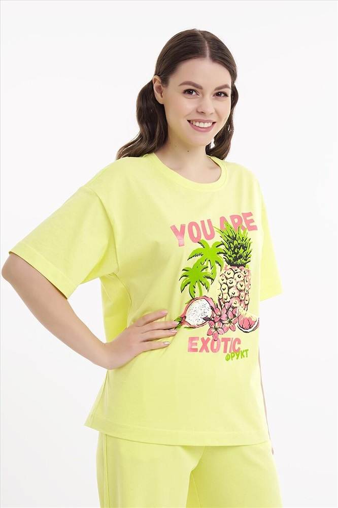Производитель: CLEVER ID товара: 1122563 Состав: 100% Хлопок Сезон: Весна/Лето Длина: Средняя Фасон: Свободный крой Рукав: Короткий Вырез горловины: Округлый Рисунок: Фрукты Основная ткань: Хлопок Стиль: Повседневный Страна бренда: Россия Страна производства: Россия