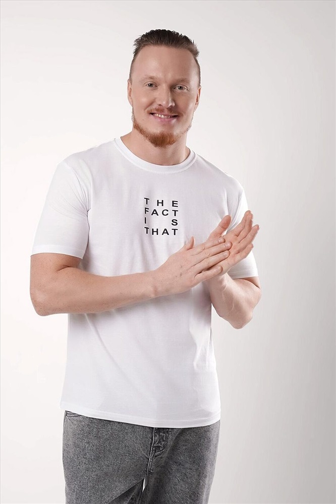 Фуфайка с коротким рукавом среднего объема, с оригинальным принтом, круглым вырезом горловины, которая оформлена обтачкой из рибаны. ТМ ЭЙС