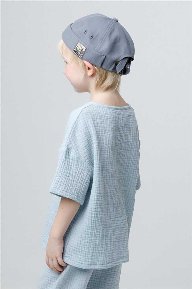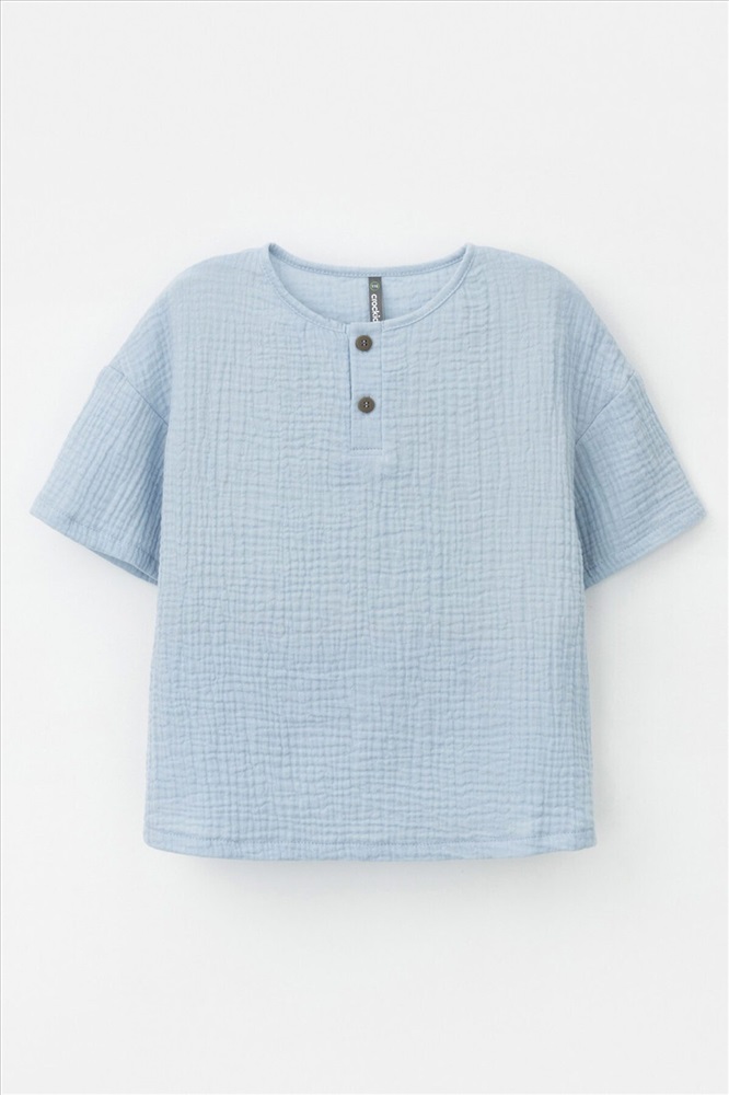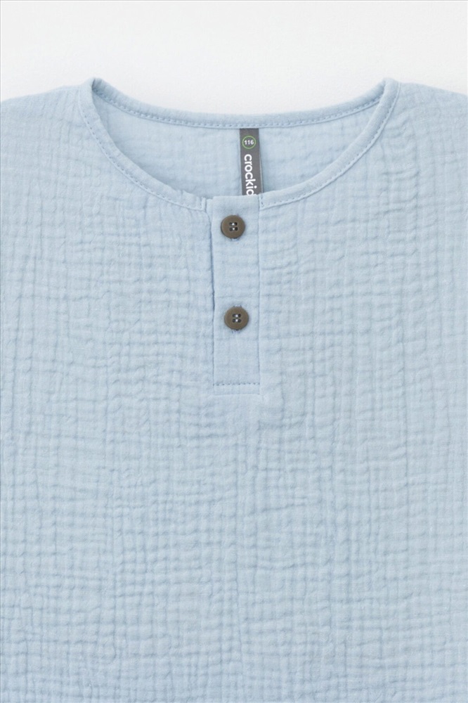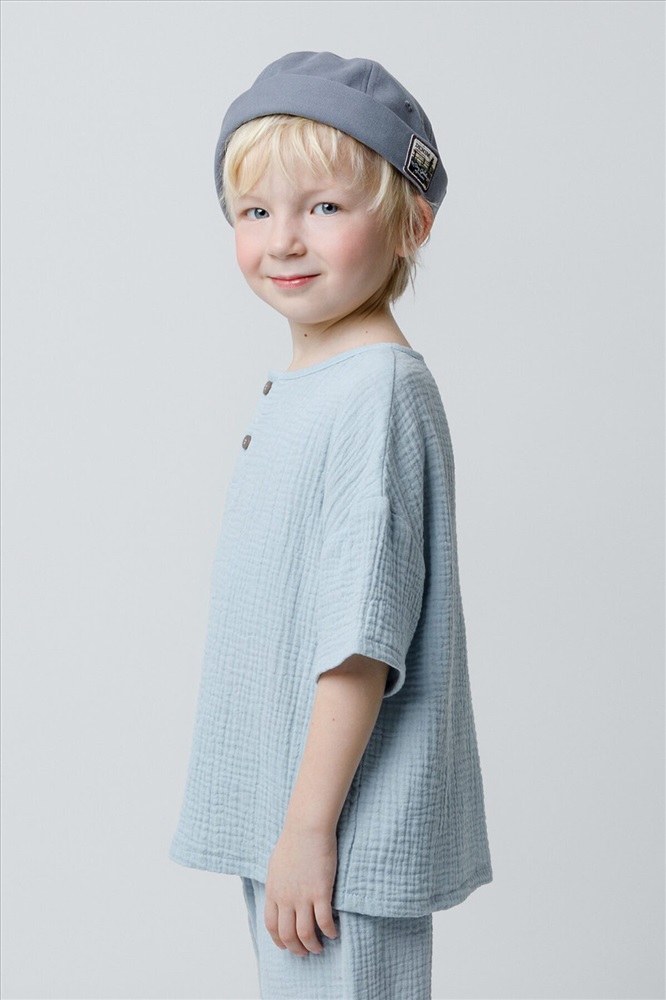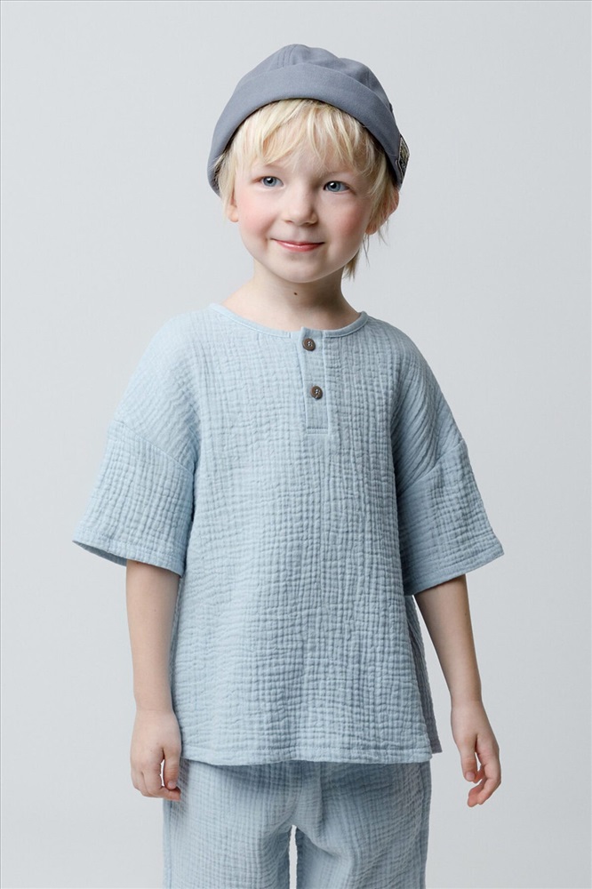ID товара: 1123763 Акции: -3%, до 23.11.2025 Состав: 100% Хлопок Сезон: Весна/Лето Длина: Средняя Фасон: Прямой Рукав: Короткий Вид застежки: Пуговицы Вырез горловины: Круглый Рисунок: нет Основная ткань: Хлопок Стиль: Повседневный Страна бренда: Россия Страна производства: Россия Легкая детская рубашка свободного кроя из мягкого хлопокового муслина, слегка спущенной линией плеча, длинными рукавами и с застежкой на пуговицы. Изделие сохраняет цвет, форму и фактуру жатости после многократных стирок. Комментарии к товару