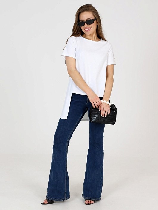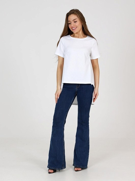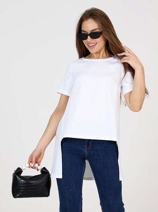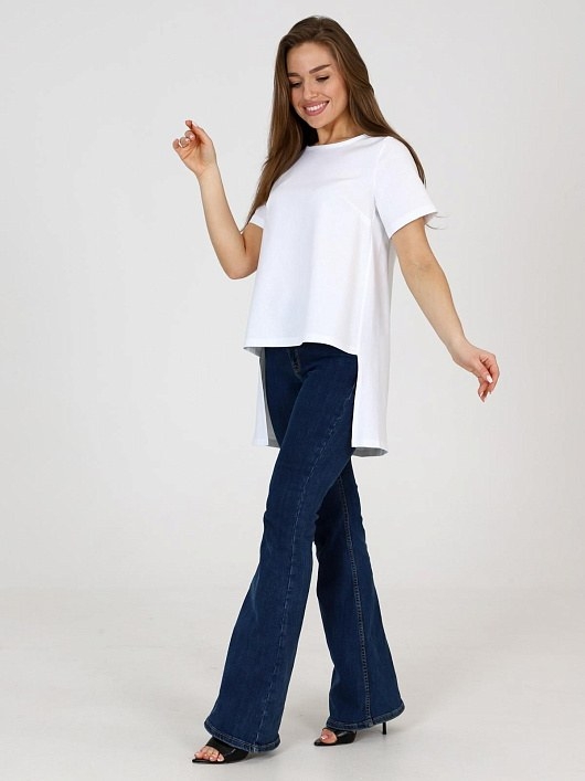 Футболка женская изо льна с круглым вырезом горловины. Рукав короткий втачной. Удлиненная спинка.