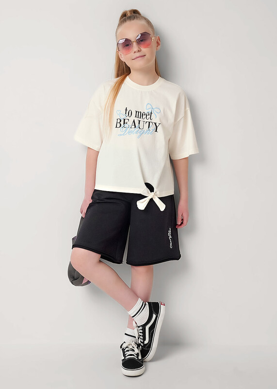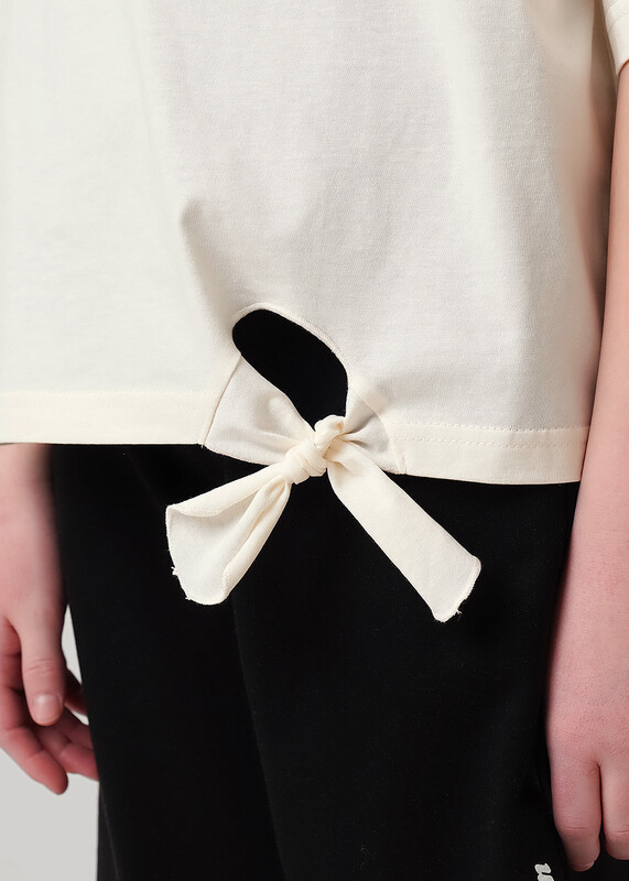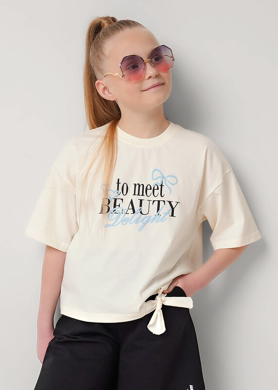 Стильная футболка из хлопкового трикотажного полотна прекрасно дополнит твой гардероб. Модель дополнена эластичной горловиной, завязкой по низу и ярким принтом. Создавай стильные яркие образы, сочетая модель с шортами или брюками из новой коллекции!