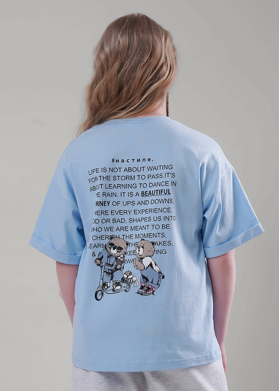 Стильная футболка из хлопкового трикотажного полотна прекрасно дополнит твой гардероб. Модель дополнена эластичной горловиной и ярким принтом. Создавай стильные яркие образы, сочетая модель с шортами или брюками из новой коллекции!