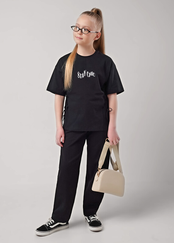 Стильная футболка из трикотажного полотна с эластаном прекрасно дополнит твой гардероб. Модель дополнена эластичной горловиной, шнуровкой по бокам и лаконичным принтом.Создавай стильные образы, сочетая модель с шортами или брюками из новой коллекции!