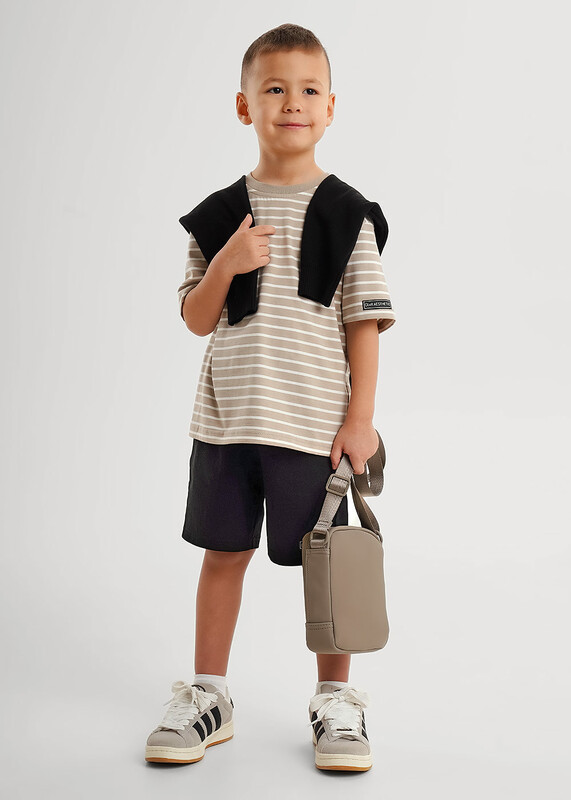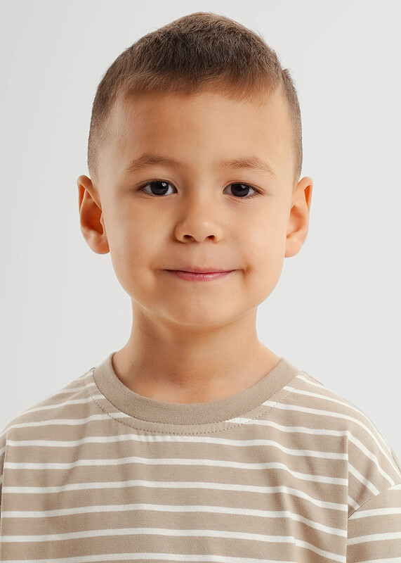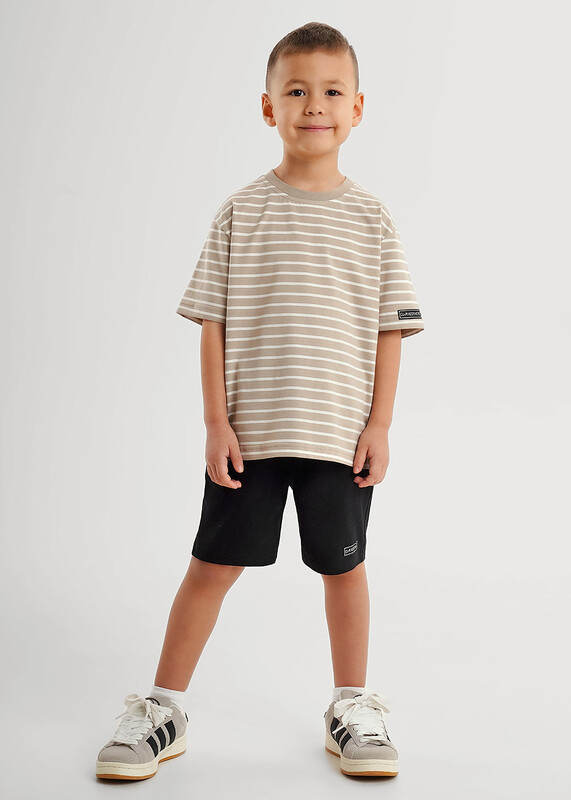 Футболка из хлопкового трикотажного полотна в трендовую набивку - ""полоска"" прекрасно дополнит твой гардероб. Эластичная горловиина и стильная нашивка на рукаве - всё для создания класссного и комфортного образа на каждый день!
