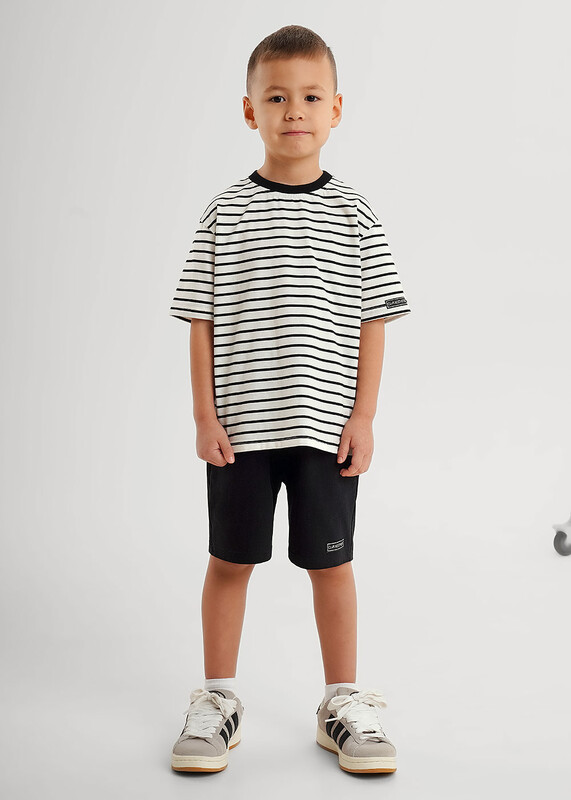 Производитель: Clever Футболка из хлопкового трикотажного полотна в трендовую набивку - ""полоска"" прекрасно дополнит твой гардероб. Эластичная горловиина и стильная нашивка на рукаве - всё для создания класссного и комфортного образа на каждый день!