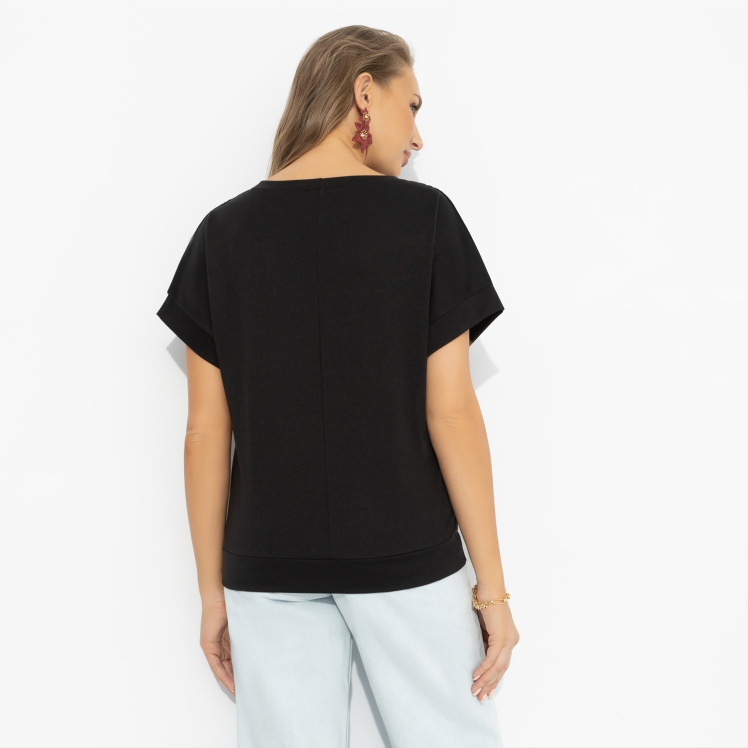 Футболка «Всегда иначе» в интенсивном оттенке черного – когда ты больше ни с кем себя не сравниваешь. Сама себе референс. Глубокий цвет усиливает характер, свободный крой даёт ощущение свободы, а фактурная вставка добавляет глубины образу. Мягкий трикотаж комфортно садится по фигуре, линия плеч расслабленная, но собранная. Всем сразу ясно: у тебя есть внутренний стержень и состояние, в котором ты – точка отсчёта. Комментарии к товару