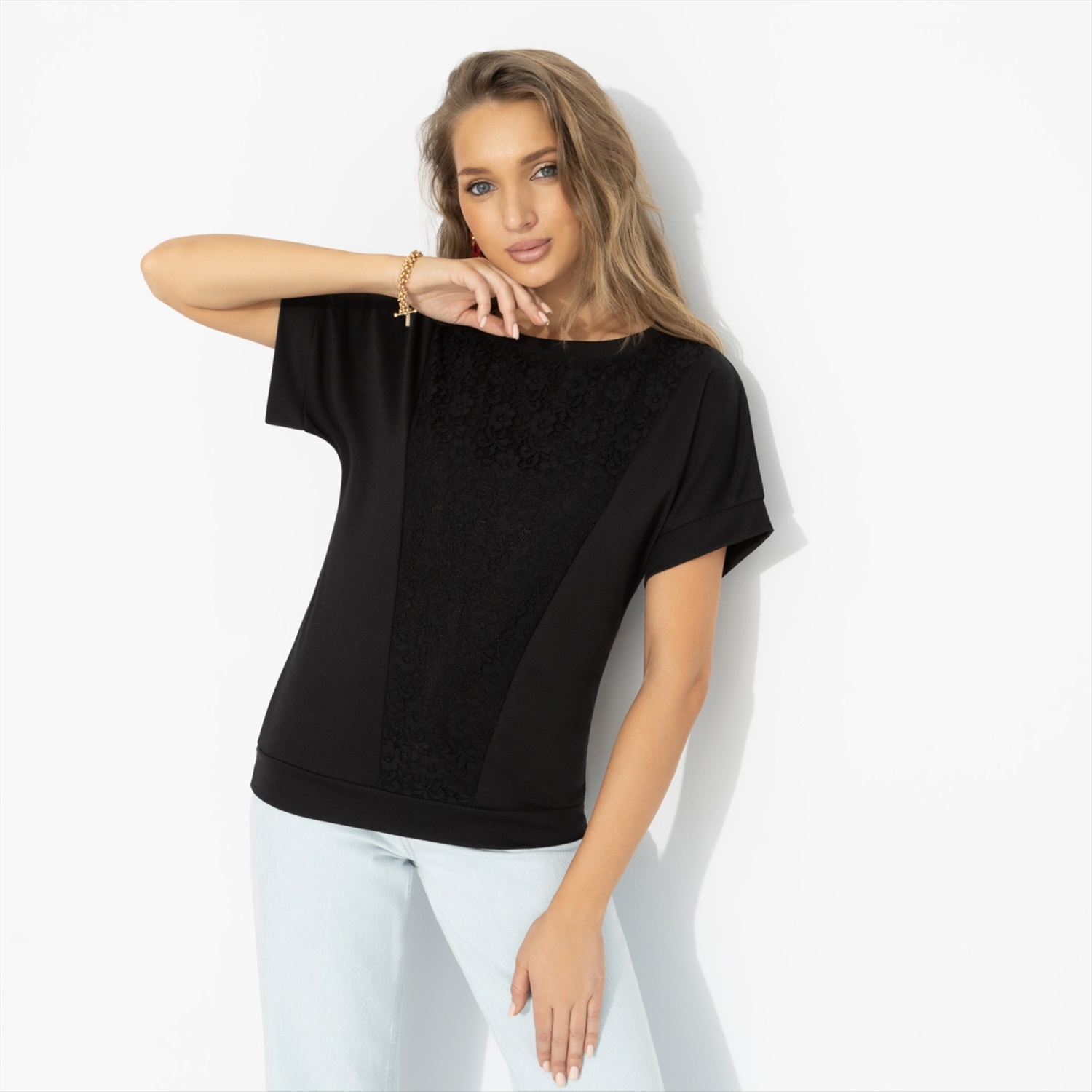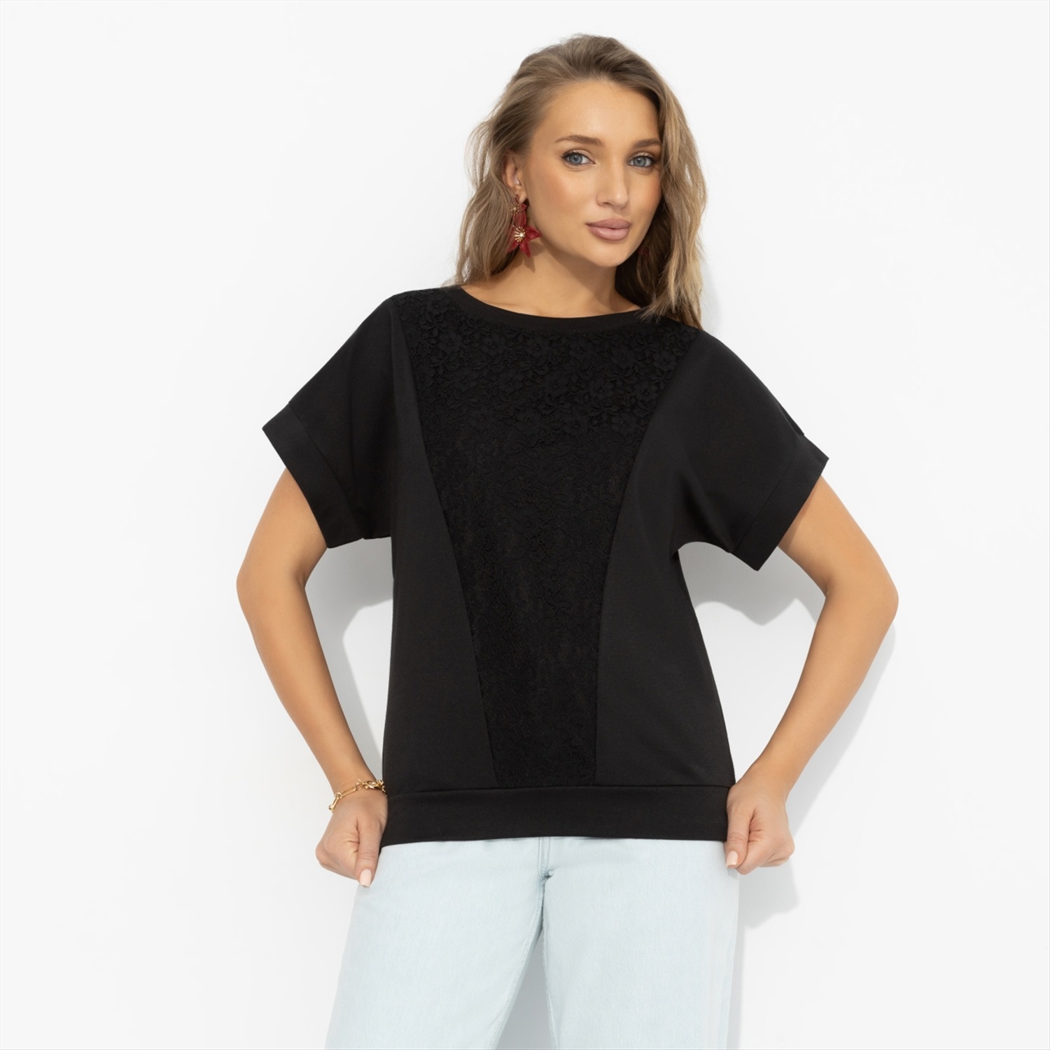 Состав: «Милано», «гипюр-стрейч» (65% п/э, 30% вискоза, 5% стрейч) Плотность ткани: Средняя Тип ткани: Трикотаж Вид застежки: Нет Карманы: Нет Основной цвет ткани: Черный Подклад: Нет Рисунок/раппорт: Каждое изделие уникально из-за расположения рисунка на ткани Сезон: Круглогодичный Силуэт: Свободный Стиль: Повседневный Параметры модели на фото: