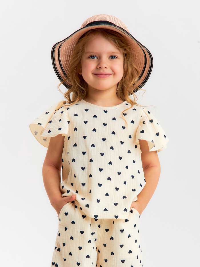 Габариты: 29 x 23 x 1 В боксе: 62 шт Размер: 34, 36 Возраст, лет: 8 Рост, см: 128 Рекомендации по уходу: Глажка при 110 °С, Деликатная стирка при 30 °С, Не отбеливать Страна: Китай Состав: Хлопок 100% Материалы: хлопок Фасовка: по 1 шт Индивидуальная упаковка: Пакет Сертификат: ЕАС Цвет: Бежевый Для кого: Для девочки Назначение: Повседневная Ткань: Муслин Сезон: Лето Вид застёжки: Завязки Тематика: С сердечками Вырез горловины: Круглый Декоративные элементы: Вырез Покрой: Прямой Вид: С рисунком Состав ткани: Хлопок Комментарии к товару