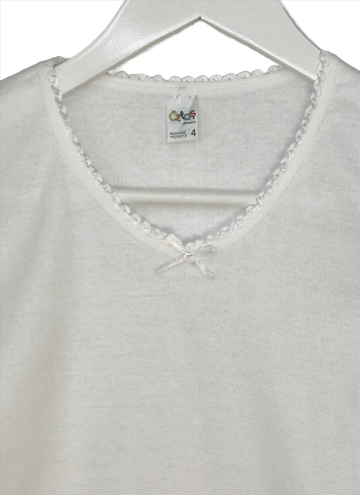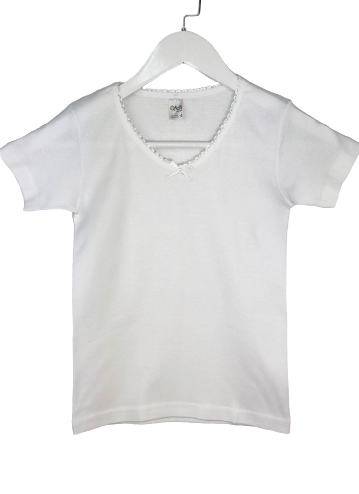 Страна: Турция Футболки для девочки изготовлена из мягкого и комфортного хлопка, чтобы обеспечить удобство и свободу движений. С коротким рукавом и круглой горловиной, украшена ажурной тесьмой. Комментарии к товару