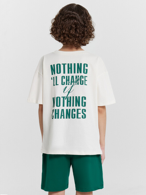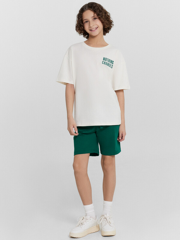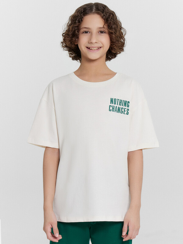 Футболка для мальчиков свободного силуэта, выполненная из хлопковой трикотажной кулирки. Натуральный материал отличается мягкостью и дышащими свойствами, что обеспечивает максимальный комфорт на протяжении всего дня. Модель имеет короткие рукава и круглую горловину, а спущенная линия плеча добавляет особого комфорта и свободу движений. Эта модель идеально подходит для активного отдыха и повседневного ношения, сочетая в себе стиль и удобство.