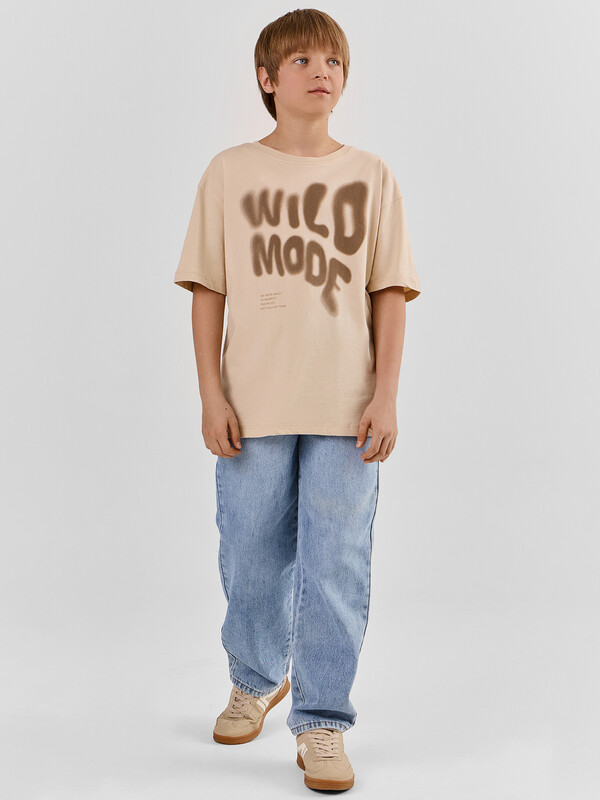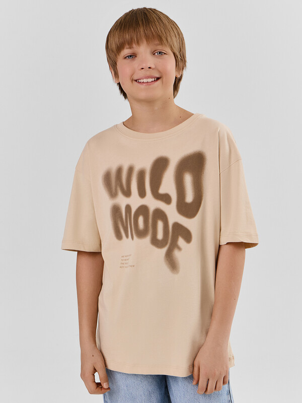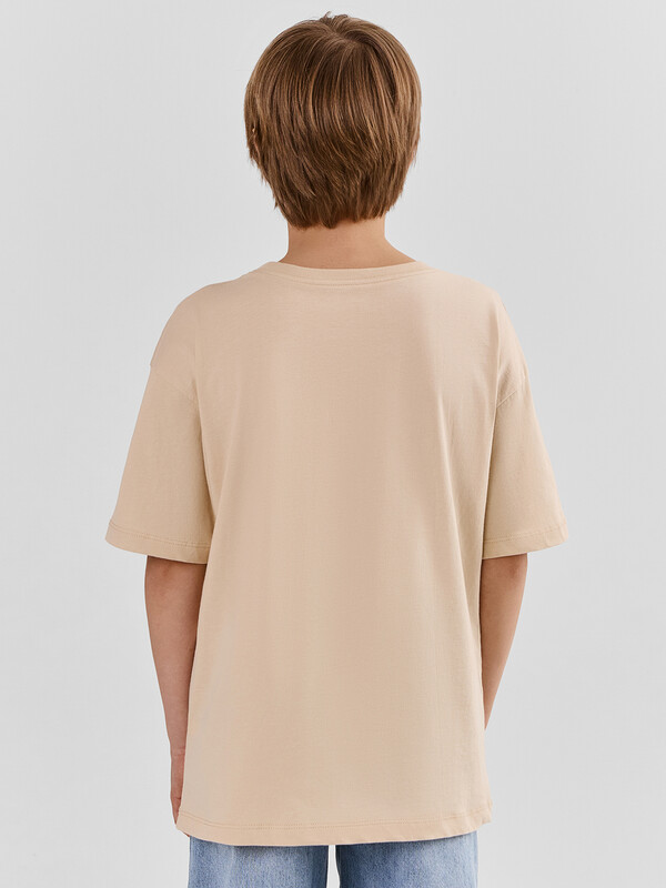 Футболка для мальчиков свободного силуэта, выполненная из хлопковой трикотажной кулирки. Натуральный материал отличается мягкостью и дышащими свойствами, что обеспечивает максимальный комфорт на протяжении всего дня. Модель имеет короткие рукава и круглую горловину, а спущенная линия плеча добавляет особого комфорта и свободу движений. Эта модель идеально подходит для активного отдыха и повседневного ношения, сочетая в себе стиль и удобство.