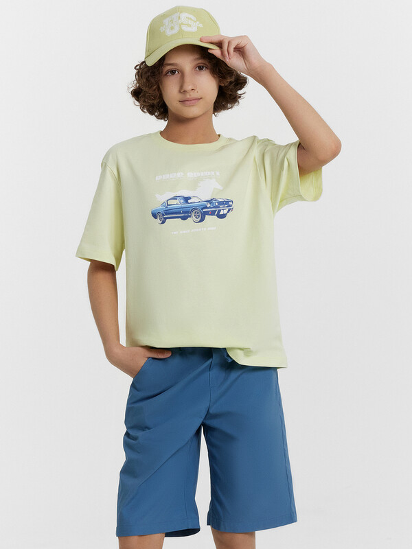 Свободная хлопковая футболка для мальчиков. Изготовлена из трикотажного полотна кулирного переплетения. Длина классическая – до середины бедер. Рукава короткие, линия плеча немного спущена. Горловина круглой формы. Рекомендуем вашему парню!
