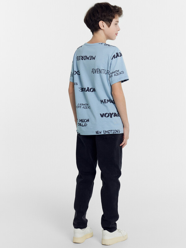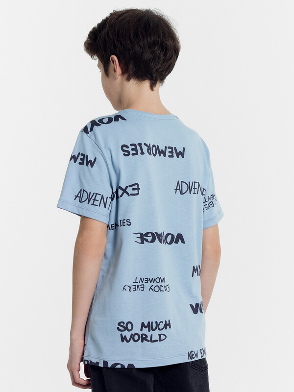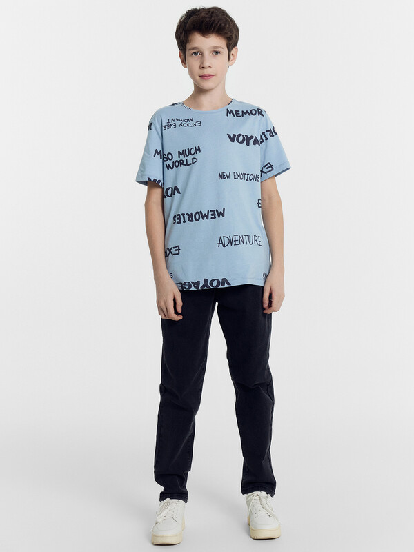 Футболка прямого силуэта. Перед и спинка цельнокроеные. Рукава втачные короткие. Горловина круглой формы, обтачка из основного полотна. Шов притачивания обтачки закрыт бейкой из основного полотна. Низ изделия и рукавов обработаны на 2-х игольной плоскошовной машине швом в подгибку.