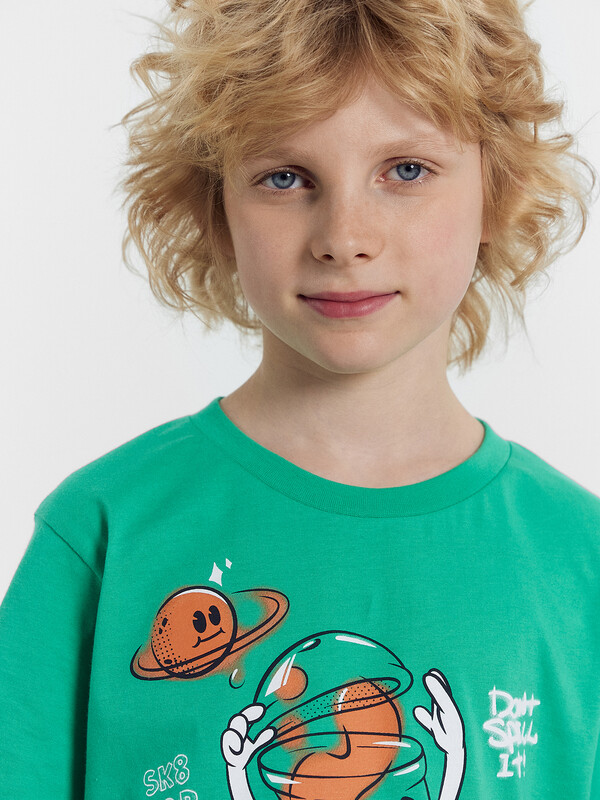 Футболка верхняя изготовлена из трикотажного кулирного полотна и трикотажного полотна рибаны..