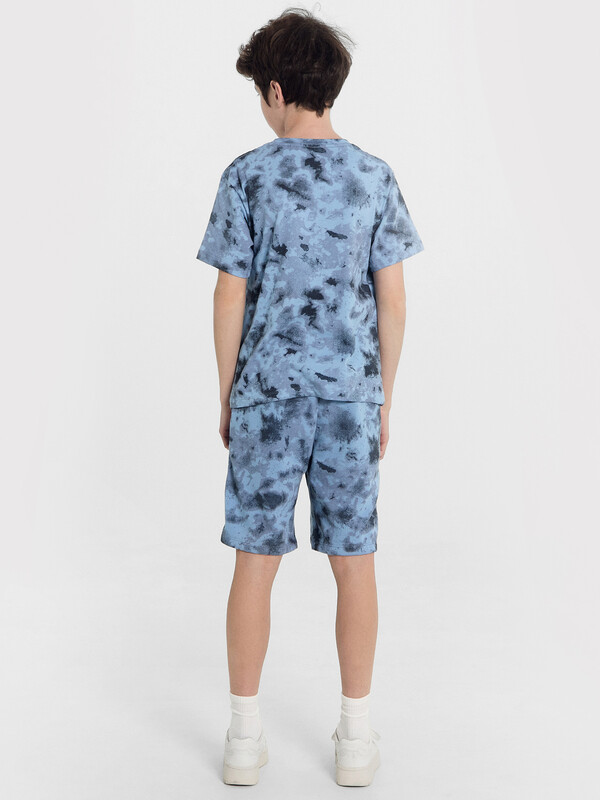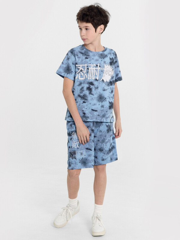 Футболка верхняя прямого силуэта. Перед и спинка цельнокроенные. Рукава втачные короткие. Линия плеча спущена. Горловина круглой формы, обтачка из трикотажного полотна рибаны 1*1. Шов втачивания рибаны по спинке закрыт бейкой из основного полотна. Низ футболки и рукавов обработан на 2-х игольной плоскошовной машине швом в подгибку.