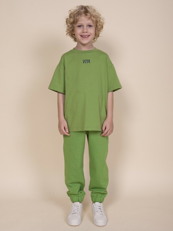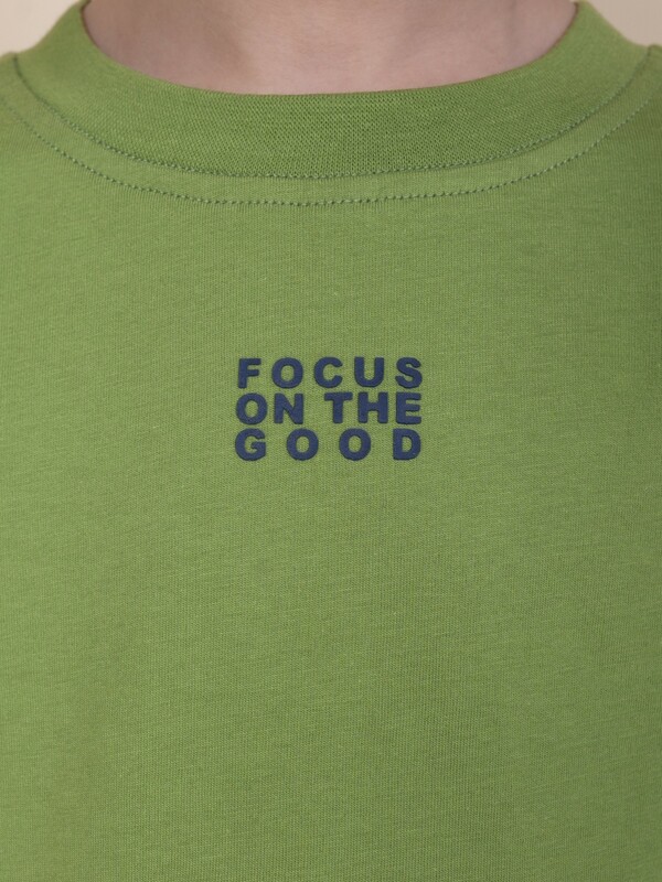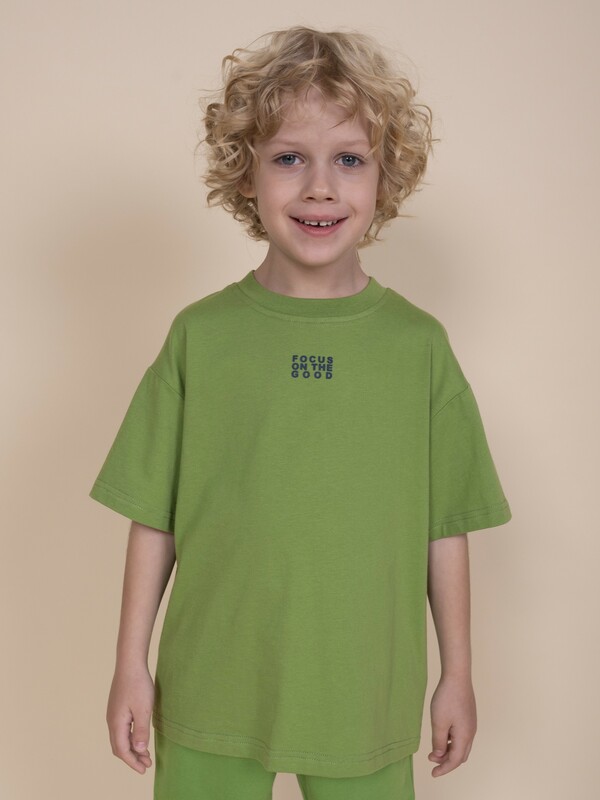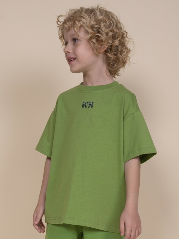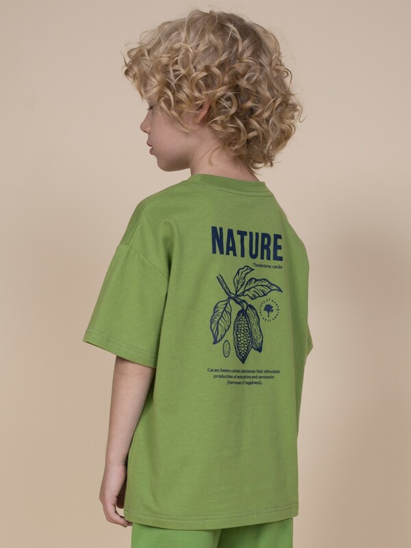 Модель представлена в цвете хаки. Красивыйзеный цвет - интересный вариант на любой выход. Футболка для мальчика с принтом украшена изображением ветки шоколадного дерева и образовательным текстом: "Nature. Theobroma cacao. Variety of ever green tree. Cacao beans contain substances that stimulate production of endorphins and serotonin (harmones of happiness)" – перевод "Природа. Шоколадное дерево. Сорт вечнозеленого дерева. Какао бобы содержат вещества, стимулирующие выработку эндерфинов и серотонина". На спинке – принт с надписью "Focus on the good" – перевод "Фокусируйся на хорошем". Изделие привлекает стильным дизайном. Свободная футболка для мальчика подростковая рассчитана на возраст садика и школы. Размерная линейка: 1 (86); 2 (92); 3 (98); 4 (104); 5 (110); 6 (116); 7 (122); 8 (128); 9 (134); 10 (140); 11 (146).