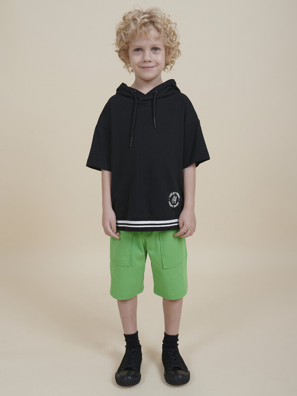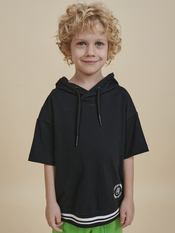 Футболка для мальчика оверсайз с капюшоном – модель большого объема на каждый день, для дома и прогулок. Базовая футболка на любой сезон.