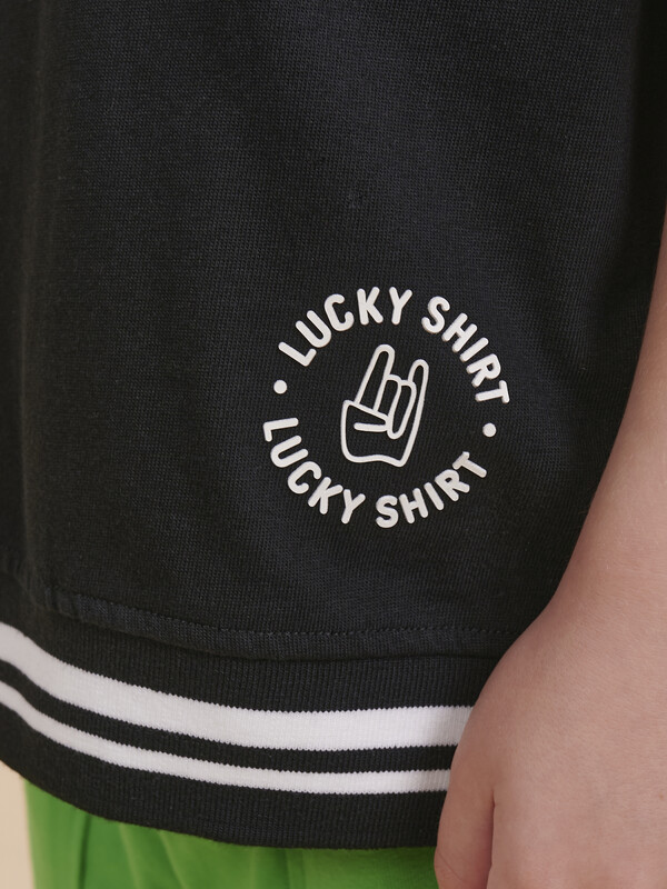 Модель представлена в черном цвете. Черная футболка для мальчика с капюшоном – стильный вариант на любой выход, по переду нюансная надписью "Catch your vibe" – перевод "Поймай свой вайб". Изделие привлекает интересным дизайном. Свободная футболка для мальчика подростковая рассчитана на возраст садика и школы. Размерная линейка: 1 (86); 2 (92); 3 (98); 4 (104); 5 (110); 6 (116); 7 (122); 8 (128); 9 (134); 10 (140); 11 (146).