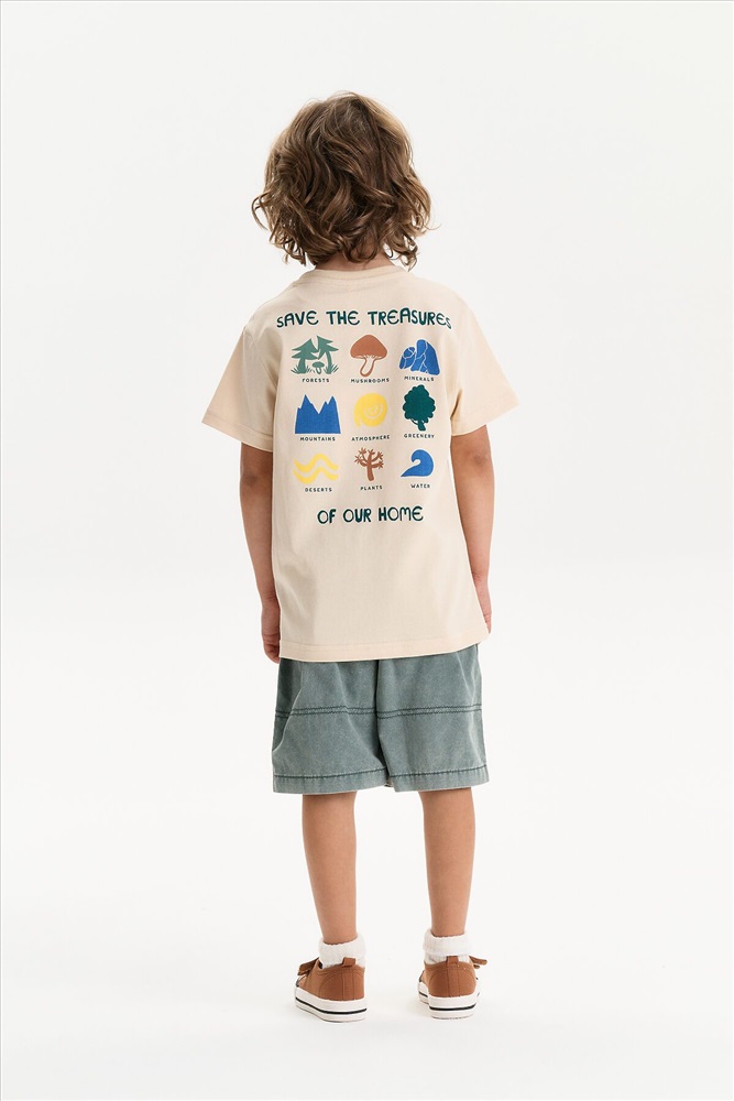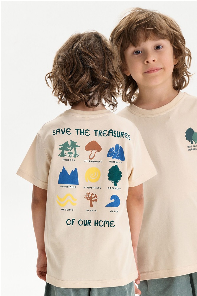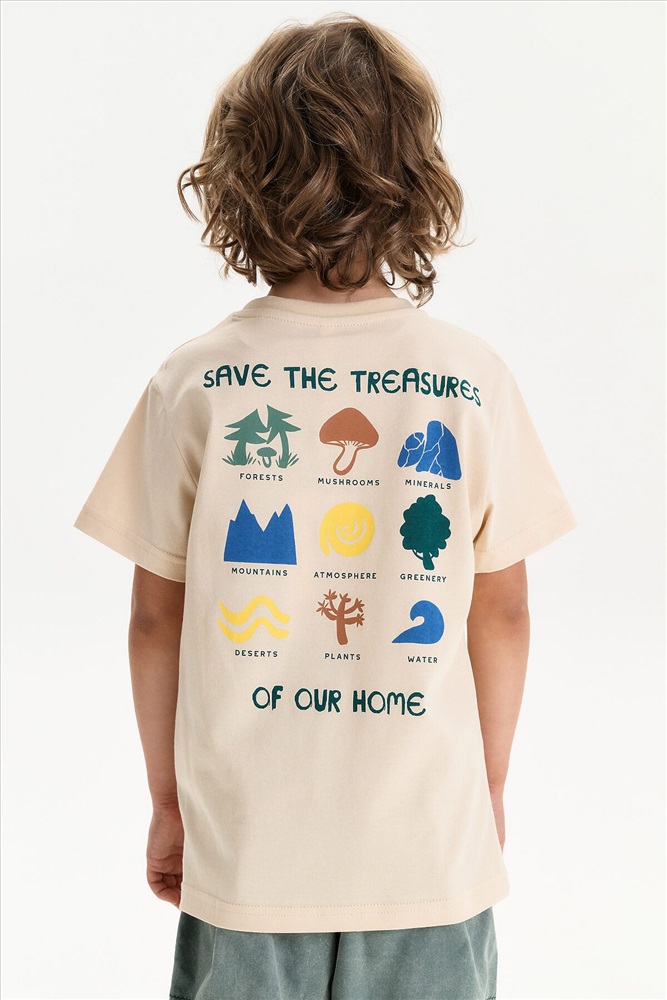 ID товара: 1232809 Состав: 100%хлопок Сезон: Демисезон Футболка для мальчика свободного кроя - это идеальный выбор для активного ребенка. Вырез горловины обработан эластичной тканью — она прекрасно держит форму, не растягивается, при этом ребёнку удобно надевать и снимать футболку. Футболка летняя с принтом на спине и надписями. Выполнена из 100% высококачественного хлопка. Перевод надписей "save the treasures of our home" - сохрани сокровища нашего дома, "forests, mushrooms, minerals, mountains, atmoshpere, greenery, deserts, plants, water" - леса, грибы, минералы, атмосфера, зелень, пустыни, растения, воду. Спортивная футболка подходит как для подростков так и для малышей в детский сад. Подходит для любого времени года. Комментарии к товару