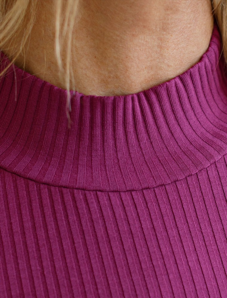 Футболка с воротом стойка выполнена из фактурного трикотажа в рубчик. Модель идеально сидит по фигуре не сковывая движения. Хлопковый трикотаж поддерживает оптимальную температуру тела, поэтому в изделии будет комфортно в течении всего дня. Наличие эластана в составе гарантирует формоустойчивости. Базовая модель впишется в любой гардероб и подойдет для офисного дресс-кода.