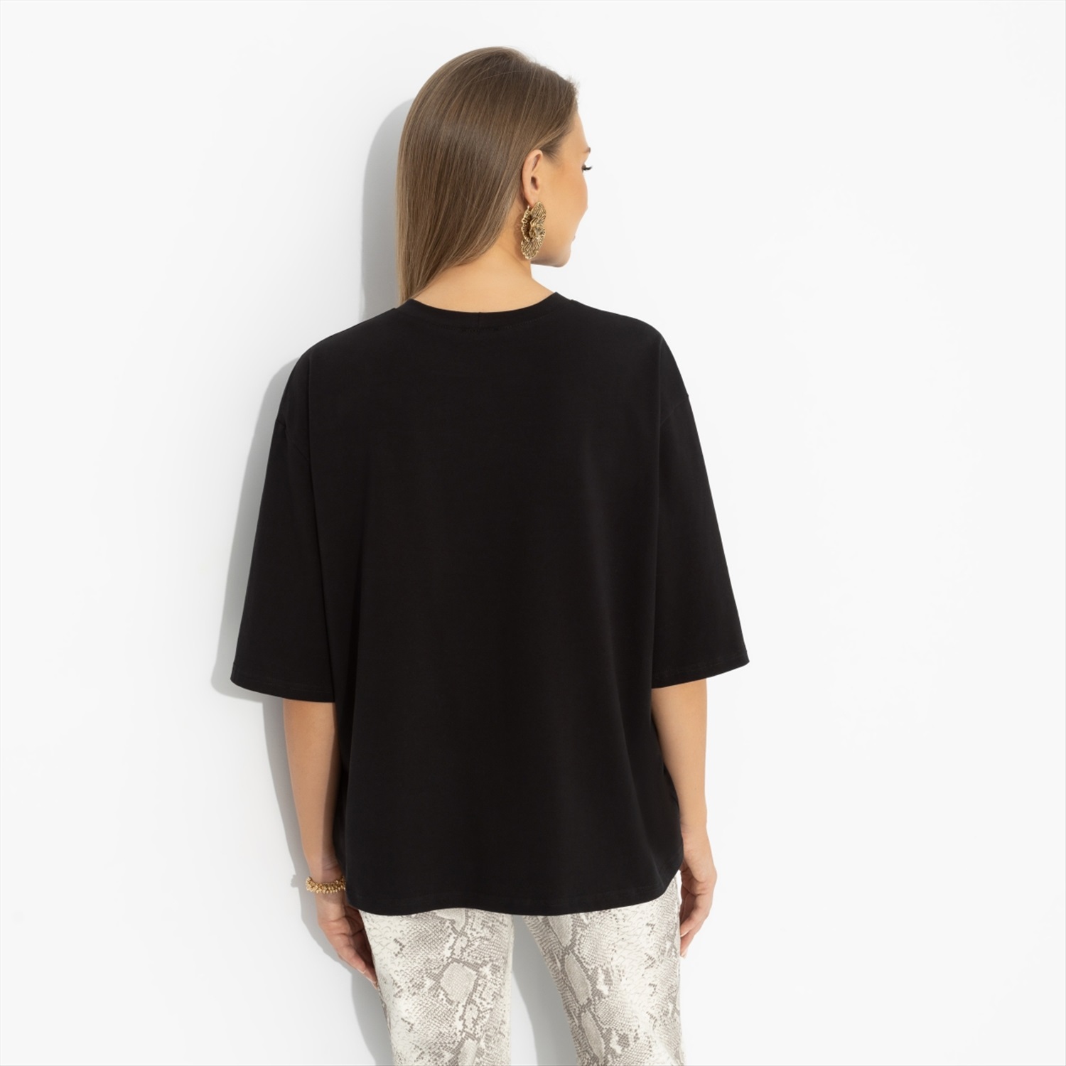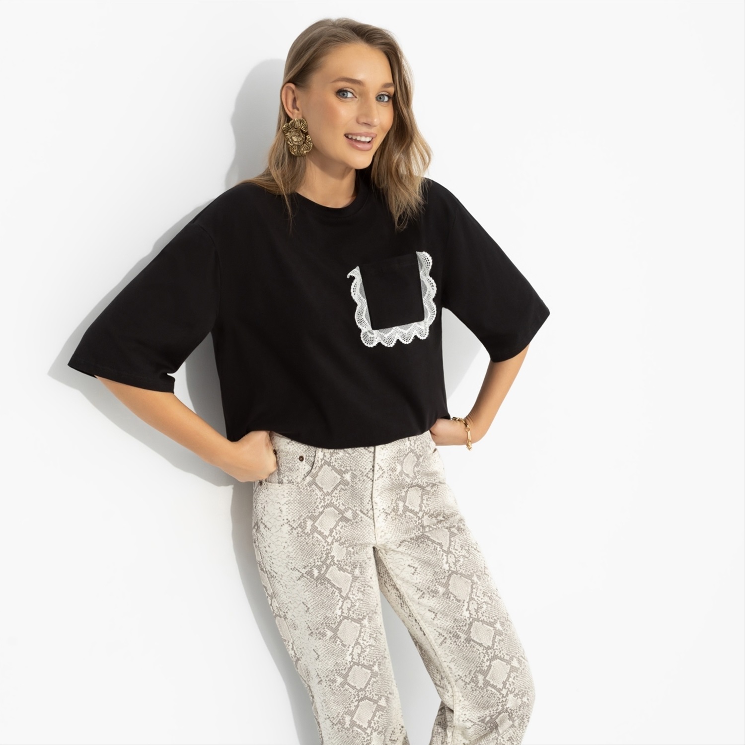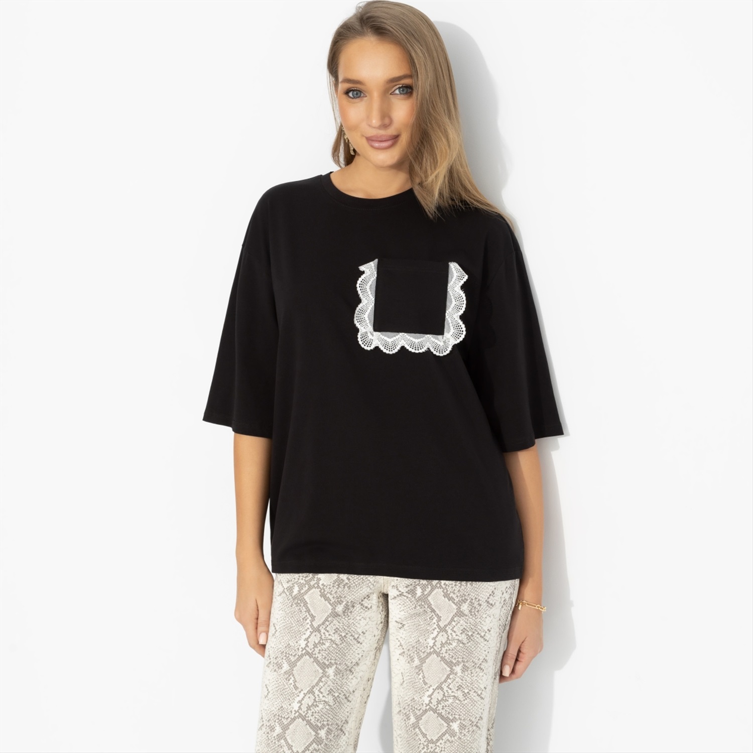 Чёрный цвет – всегда безопасная ставка, а кружевной акцент выводит твой образ из режима «просто» в режим «сохранить в избранное». Свободный крой, мягкая линия плеч и комфортная длина дают ту самую расслабленность, которую так любит стилизовать Марианна Елисеева. Надела – и ты на стильной волне.