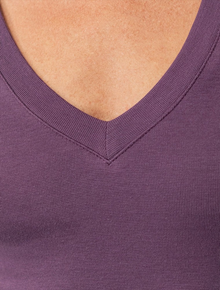 Облегающая футболка с V-образным вырезом цвета "бургунди" создаст утонченный образ. Идеальная базовая модель для вашего гардероба! Глубокий V-образный вырез подчеркивает линию шеи и зрительно удлиняет силуэт. Футболка выполнена из хлопка с добавлением эластана, которая мягко облегает контуры тела, подчеркивая достоинства фигуры. Универсальный вариант для создания стильных повседневных образов.