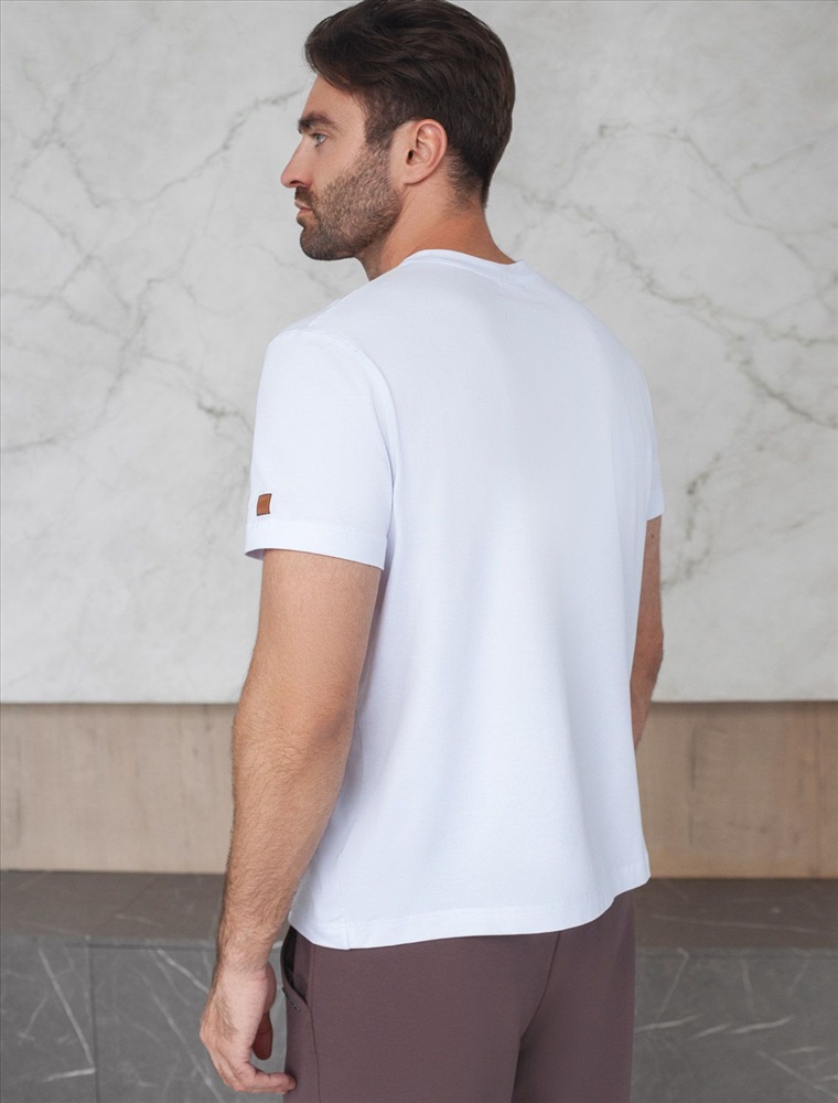 Состав: 92%Хлопок 8%ПУ; Плотность: 170 Г/м2; Параметры модели на первом фото: Рост 190, бюст 108, талия 87, бедра 104 Футболка выполнена из премиального хлопка с эластаном. Авторский принт нанесен фактурными красками с устойчивым покрытием. Изделие комфортно сидит по фигуре, не сковывая движений. За счет среднего объема, хорошо подойдет как первый слой под пиджак, кардиган или бомбер. На рукаве нашивка из эко-кожи с логотипом бренда.