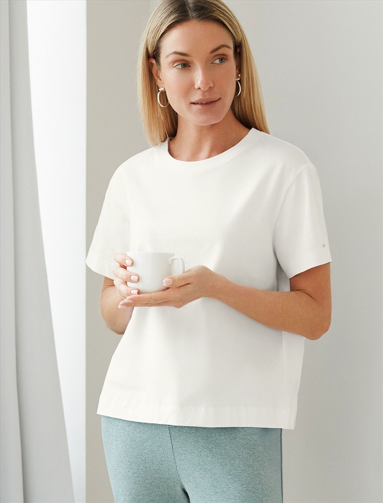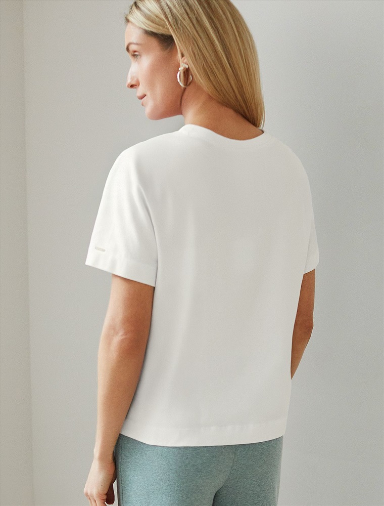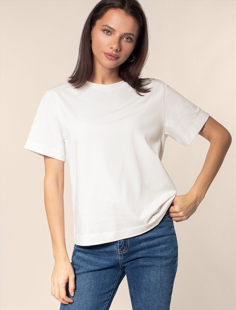 Футболка выполнена из премиального хлопка. Базовая модель, которая хорошо будет сочетаться в гардеробе с любым низом и любым дополнительным верхом вне зависимости сезона. Эластан в составе способствует формоустойчивости и меньшей сминаемости. Изделие украшено логотипом бренда.