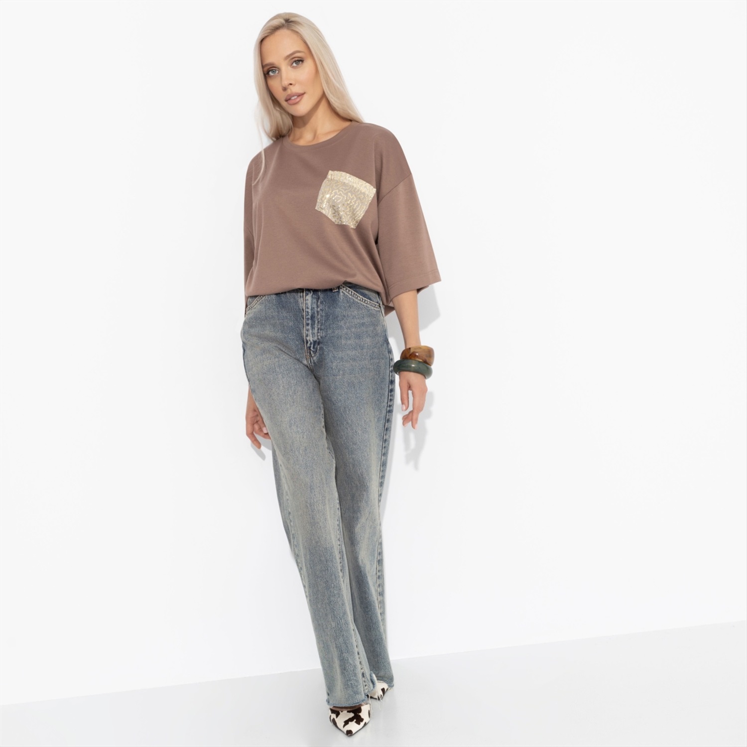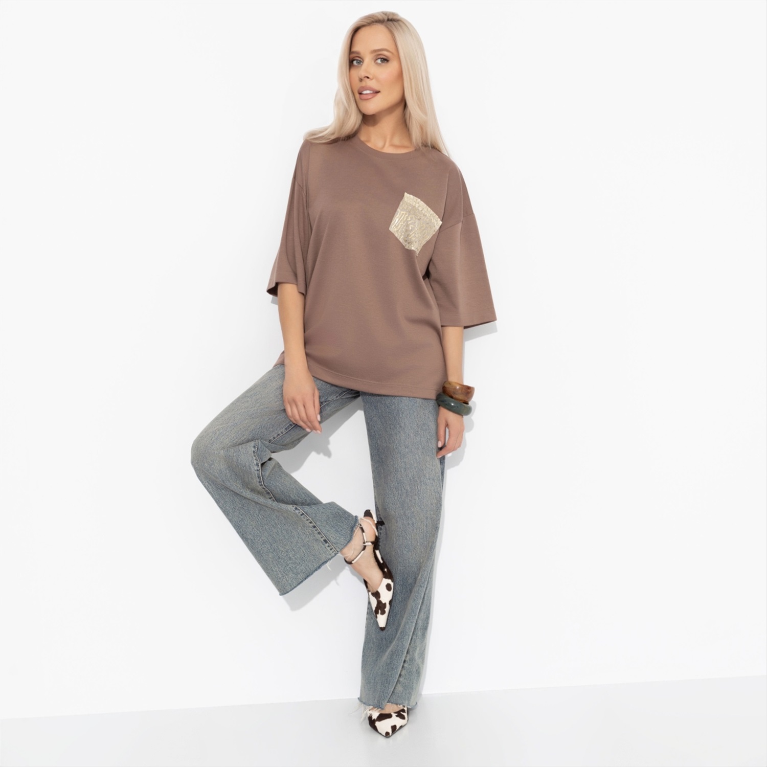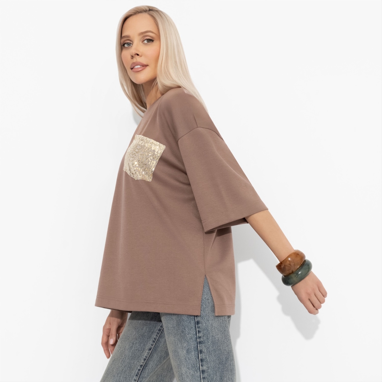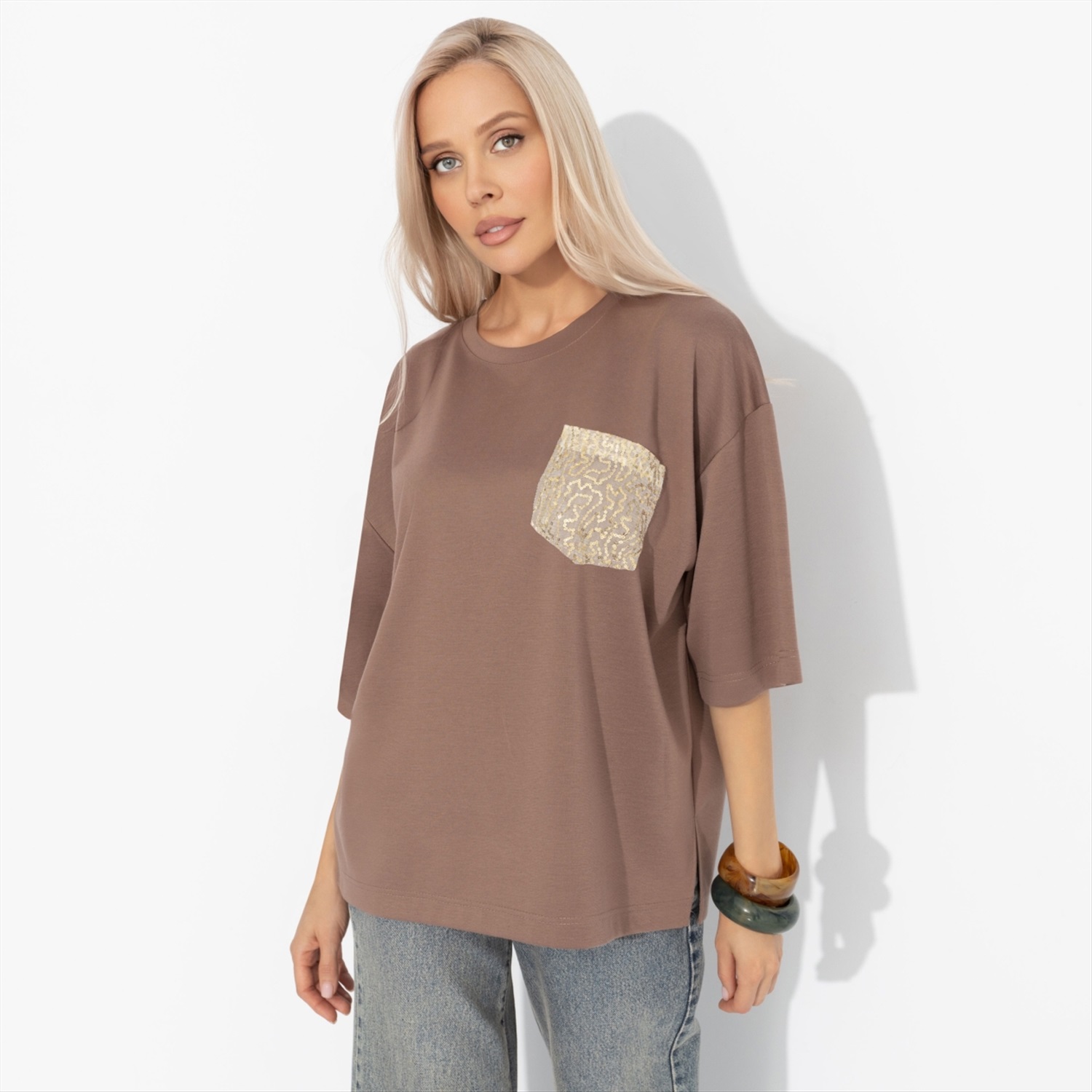 Футболка ЧАРУТТИ — твой секретный ключ к безупречному образу для любого события. Мерцающие пайетки, играющие на свету, моментально превращают простой силуэт в элегантный наряд, готовый к вечерним приключениям. Идеально с джинсами для брутального шика или с юбкой-миди для нежного романтичного образа. Футболка удлиненная свободного кроя. Акцентная деталь – карман по передней стороне изделия из сетки с пайетками. Пайетки прошиты. Изделие хорошо смотрится в заправленном виде и навыпуск. Комментарии к товару