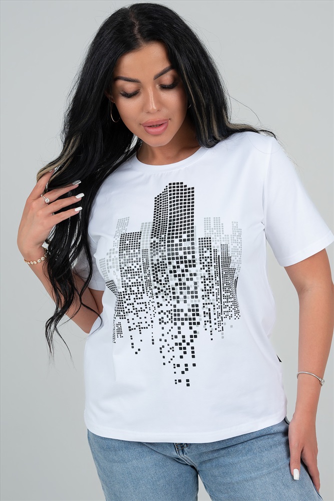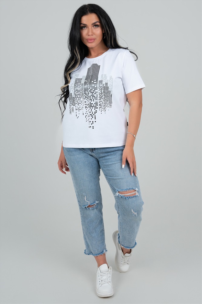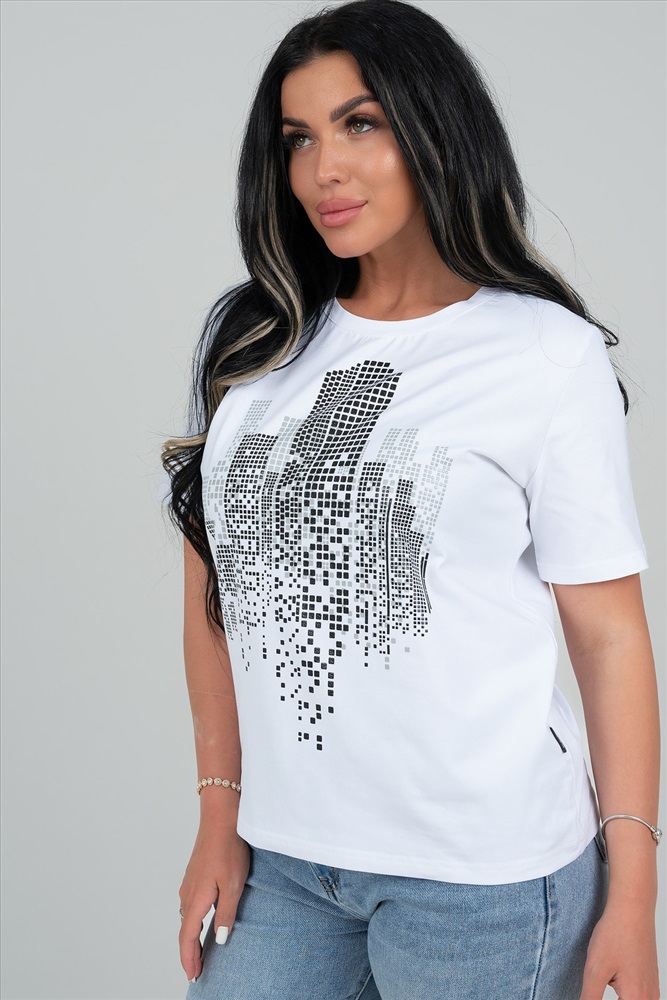 Состав: Хлопок -95%, лайкра - 5% Модель: Футболка Кэнди Тип товара: футболка Материал: кулирка с лайкрой | кулирка с лайкрой Бренд: E&D Длина: средняя длина Отделка: с печатью Рейтинг: Рейтинг 4 и выше Рисунок: крупный принт | разное Рукав: короткий рукав Сезонность: лето | осень | весна Силуэт: прямой Стиль: повседневный Стильная женская однотонная футболка с принтом из кулирки с лайкрой. Футболка прямого кроя, с коротким рукавом и округлым воротом подойдет под любой современный образ. Таблица размеров и веса