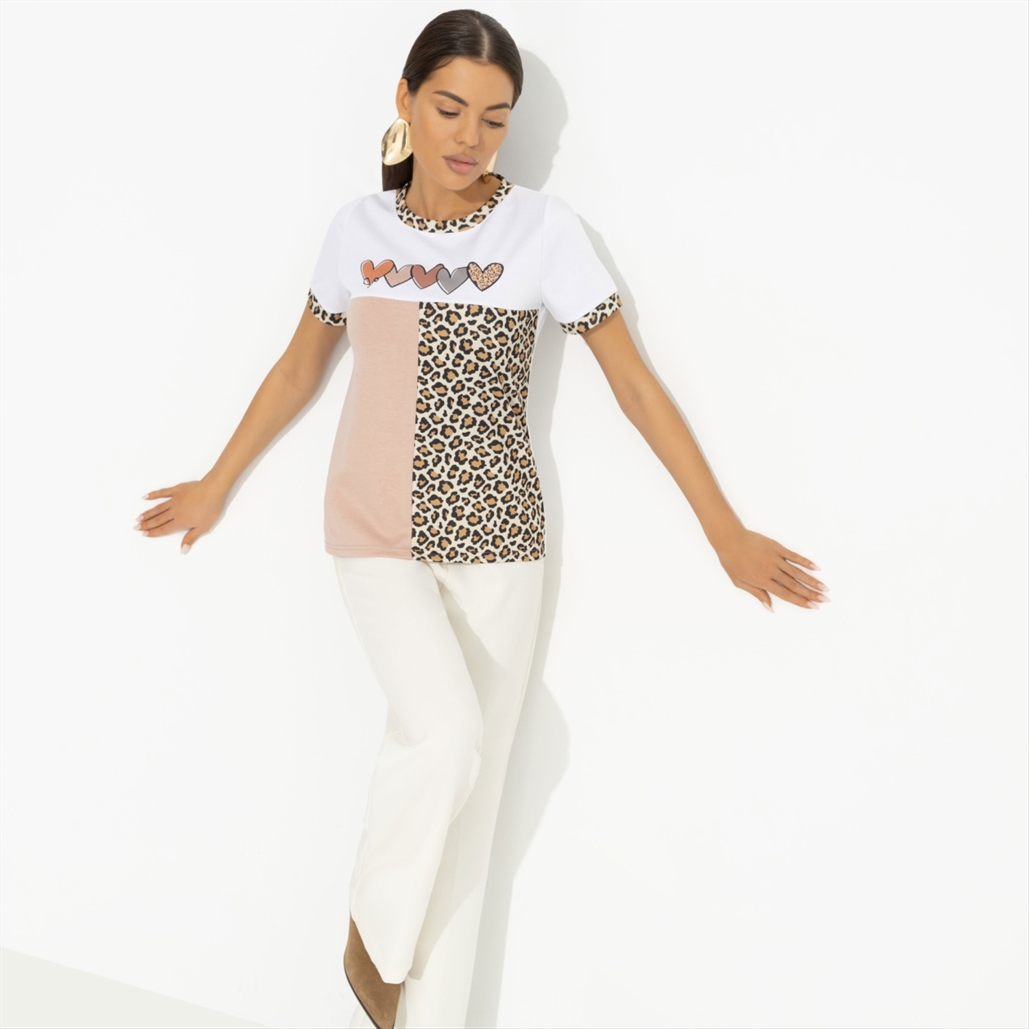 Идеальное утро начинается с кофе в постель, возможности никуда не торопиться и выбрать футболку CHARUTTI. При желании в ней можно провести весь день. Комфорт в максимальной степени. Футболка классического кроя из эластичной ткани. Комбинация нескольких принтов. Отвороты на рукавах прошиты. Комментарии к товару