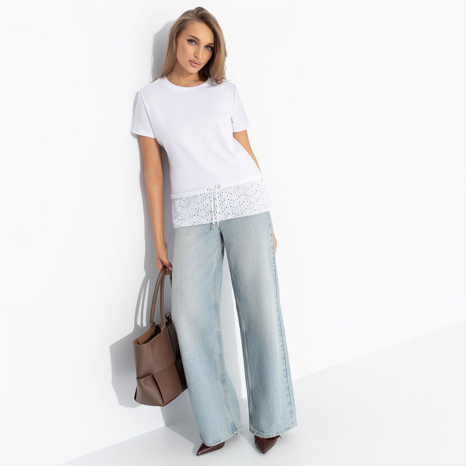 Начните с чистого листа и с белой футболки. В плане: сельдереевый сок по утрам, заниматься йогой и читать позитивные аффирмации. Так закладывается фундамент для новых привычек в футболке ЧАРУТТИ. Футболка классического кроя. Подол оформлен вставочкой с перфорацией в тон изделия. Есть акцент в виде регулируемой кулиски. Комментарии к товару