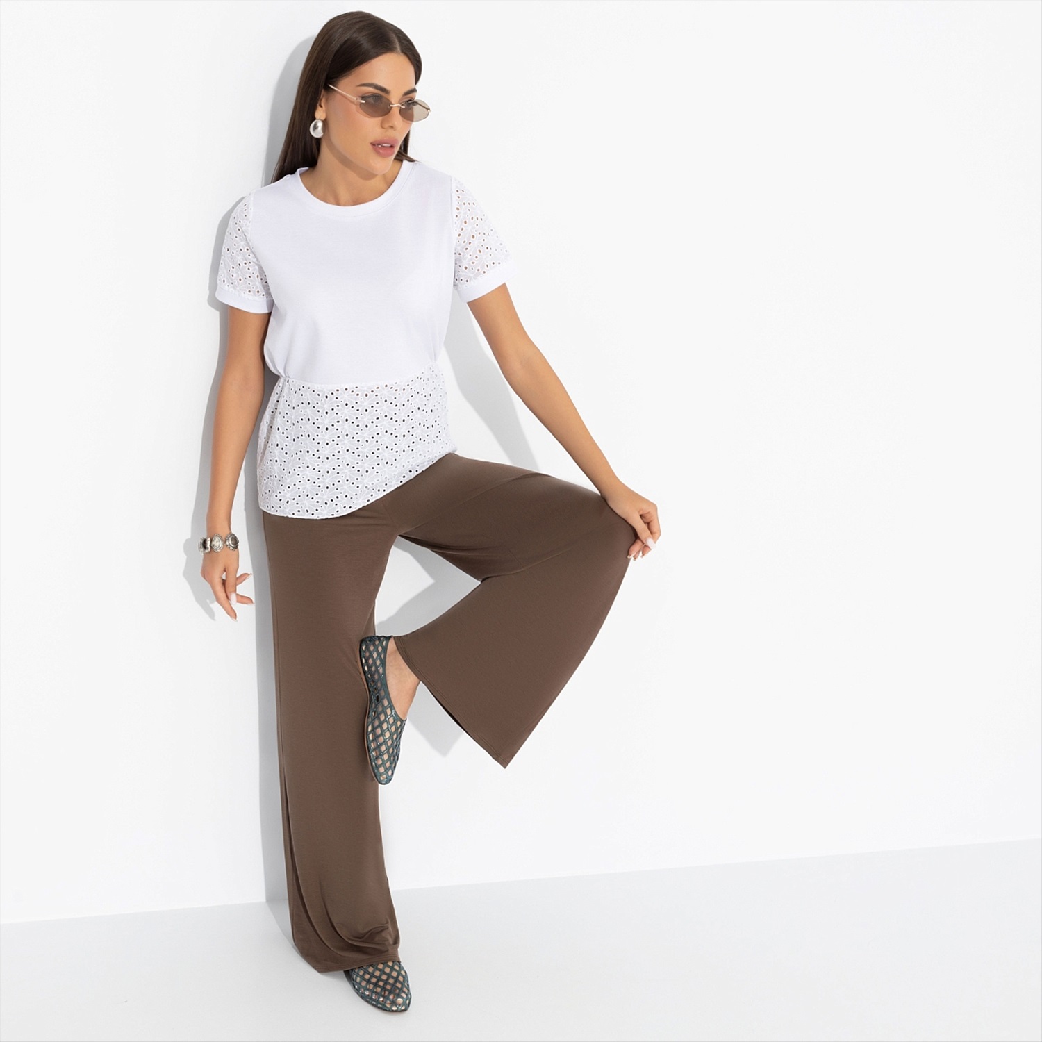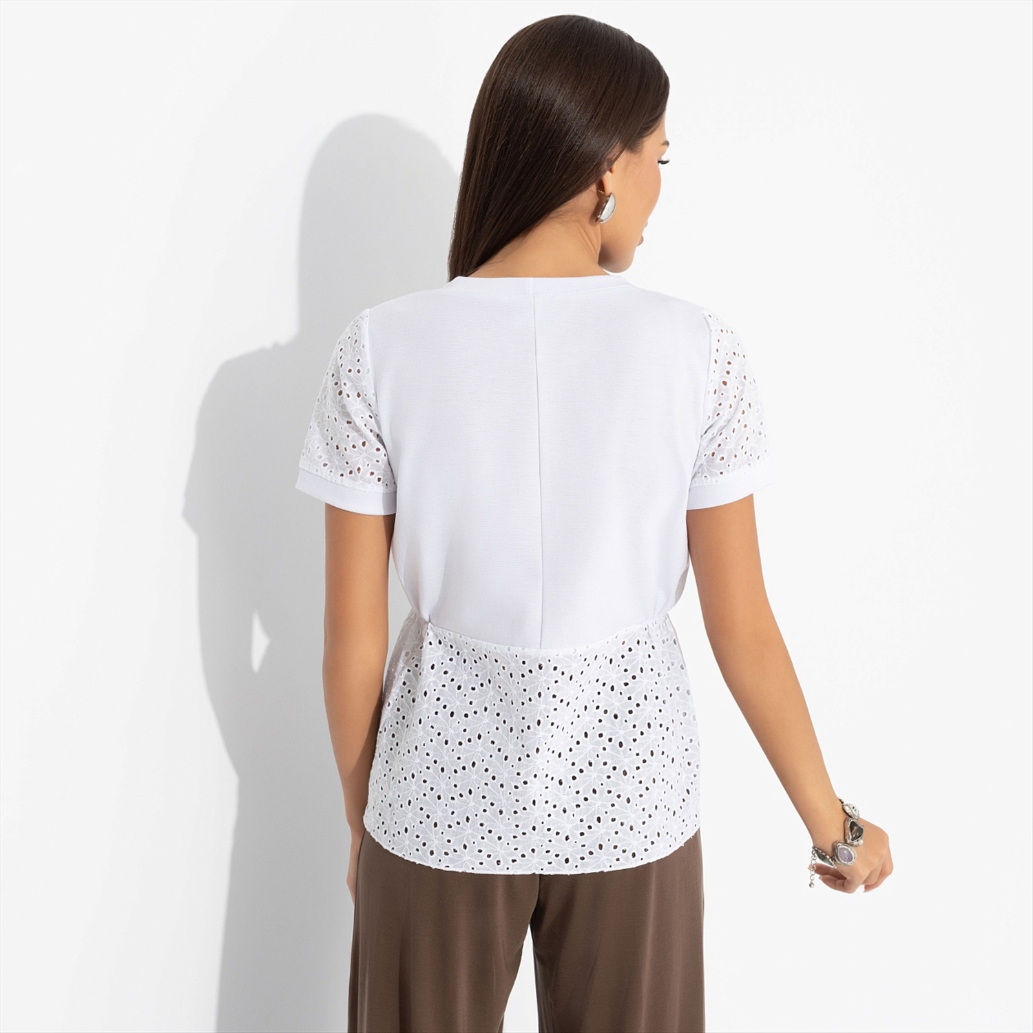 Bonjour, леди. Отправляетесь в путешествие своей мечты? Возьмите с собой футболку CHARUTTI. Она станет шикарным дуэтом и с шортами, и с юбками в пол, и с льняными брюками. К тому же, приятно оттенит золотистый оттенок вашей кожи. Футболка акцентного кроя. Линия талии выделена деликатными сборками по бокам изделия. Комбинация двух видов материала.