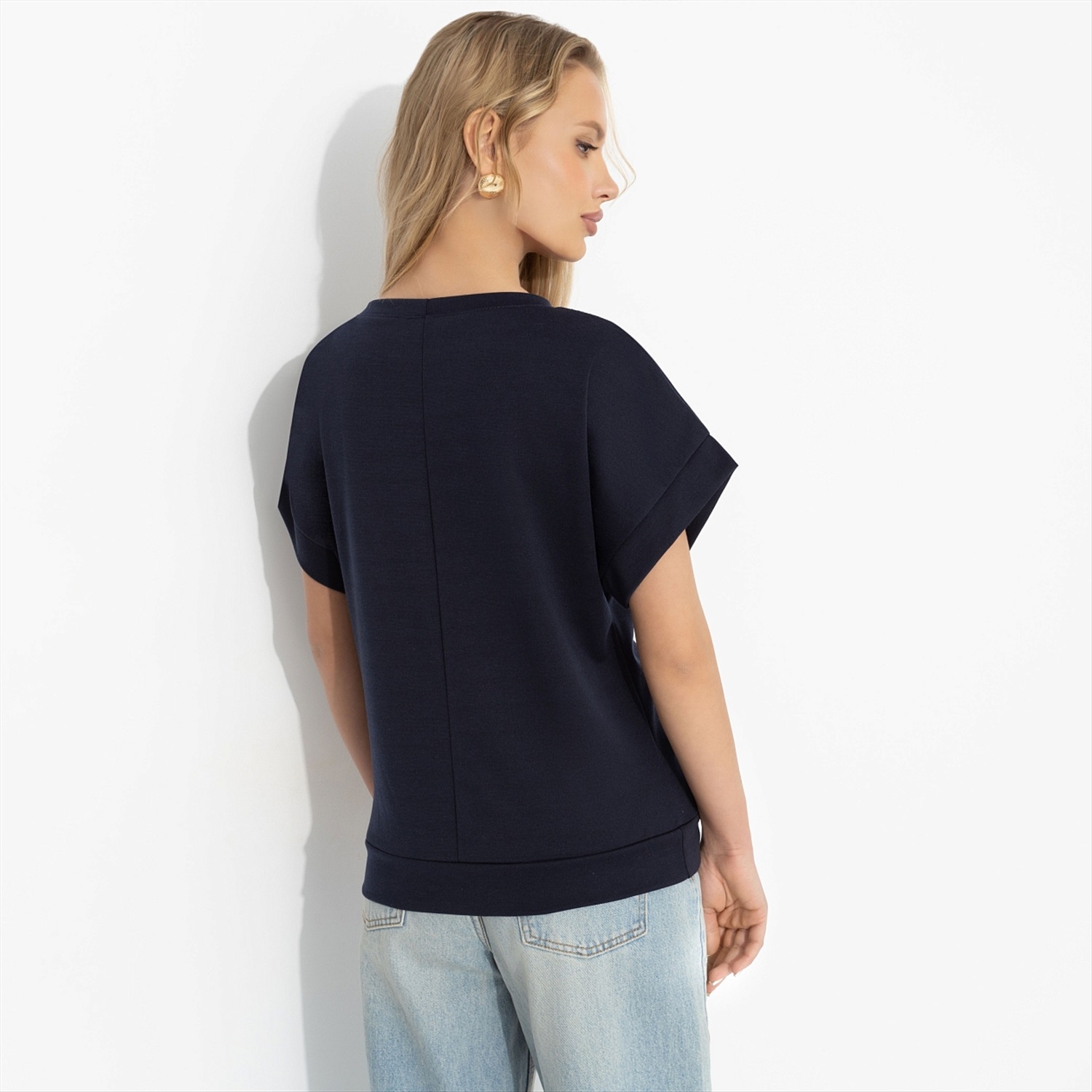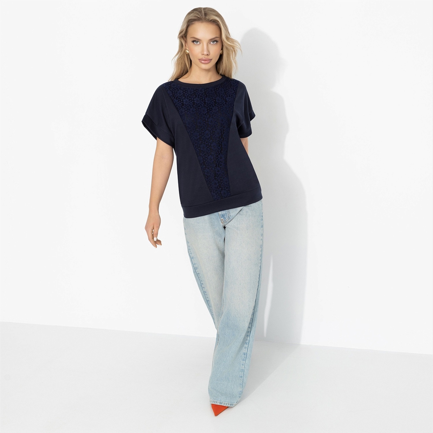 Утро пошло не по плану: будильник предал, кофе убежал, такси отменилось. Ты хватаешь первую вещь – и она вдруг спасает весь день. Как хорошо, что это оказалась твоя новая футболка от ЧАРУТТИ. Глубокий синий собирает образ, мягкая ткань ложится идеально, гипюр-стрейч добавляет фактуры без лишнего пафоса. Свободный крой не сковывает. База, которая не подводит – даже когда всё вокруг хочет поступить иначе.