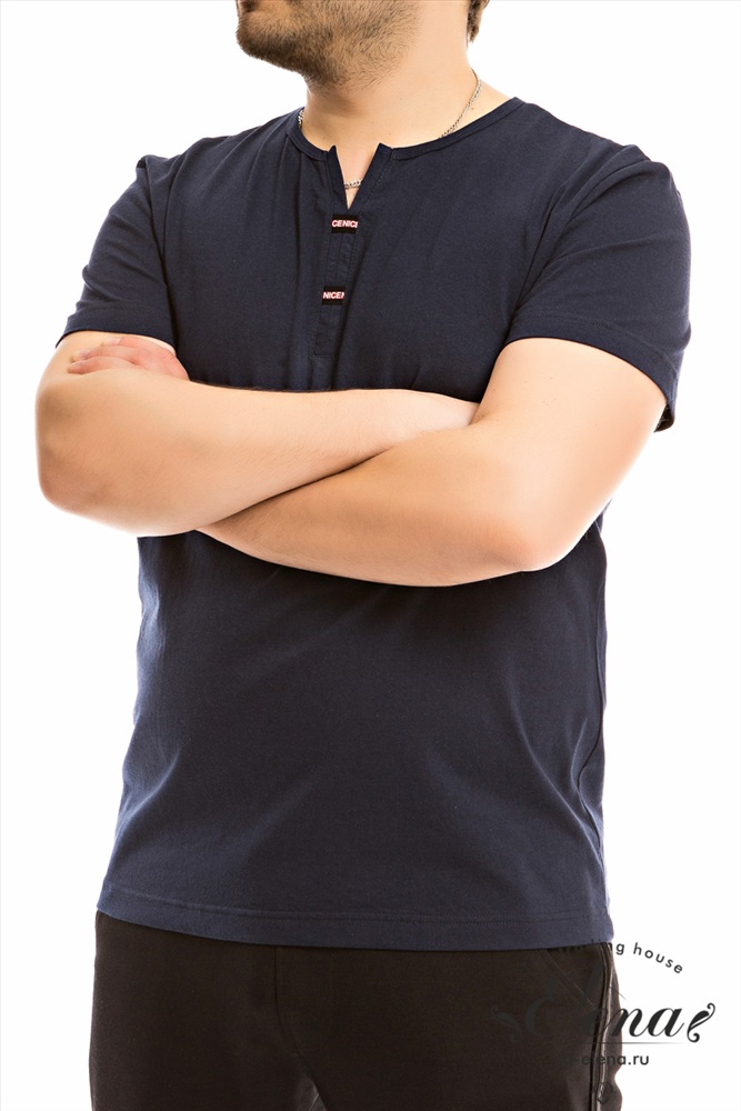 Сезон: Всесезонный Силуэт: Прямой Состав: Хлопок 100% Цвет Номенклатуры: синий Футболка выполнена из однотонного хлопкового полотна. С коротким втачным рукавом. Горловина с декоративной планкой, обработана бейкой. Комментарии к товару