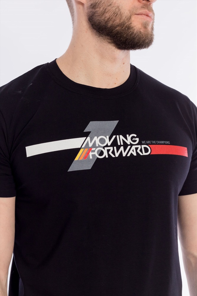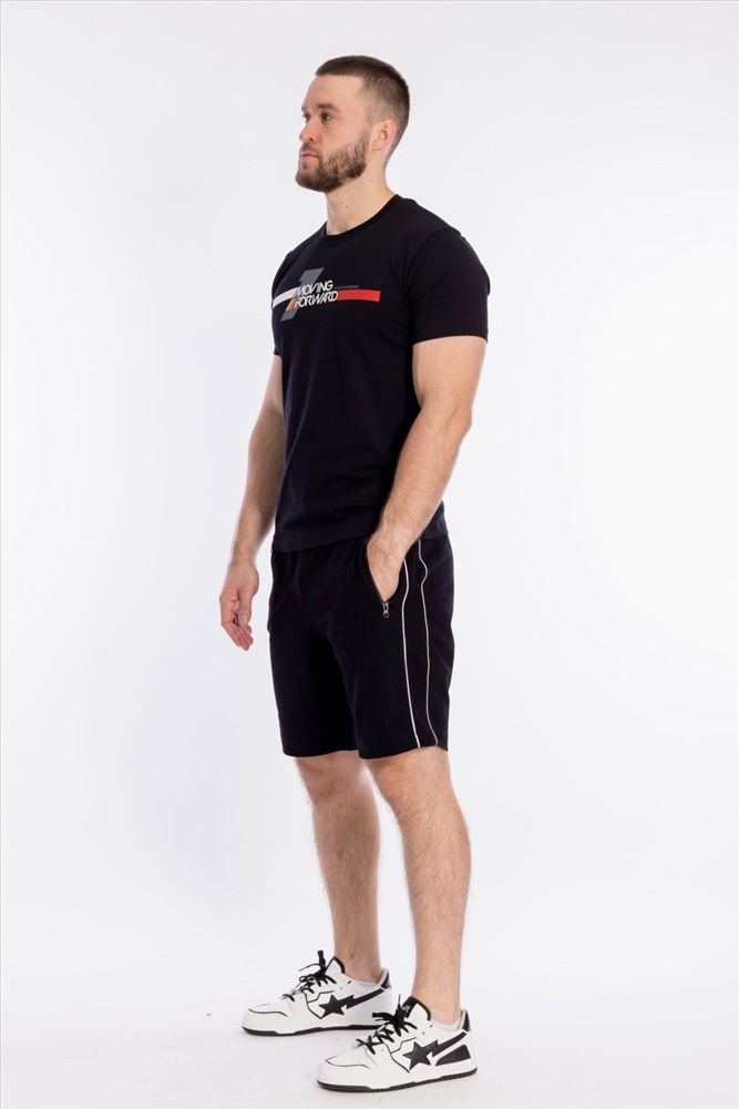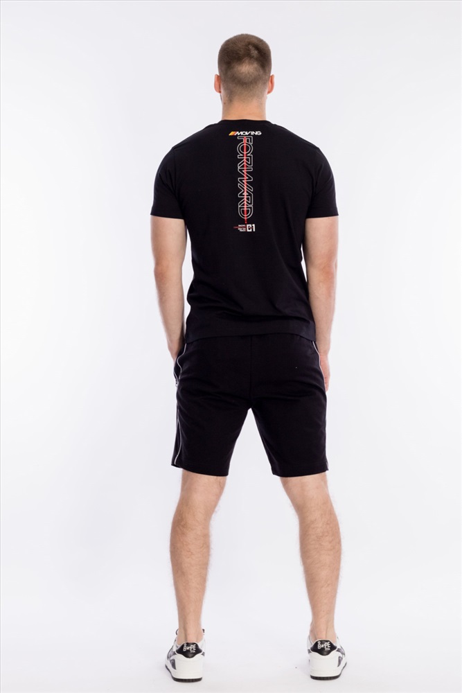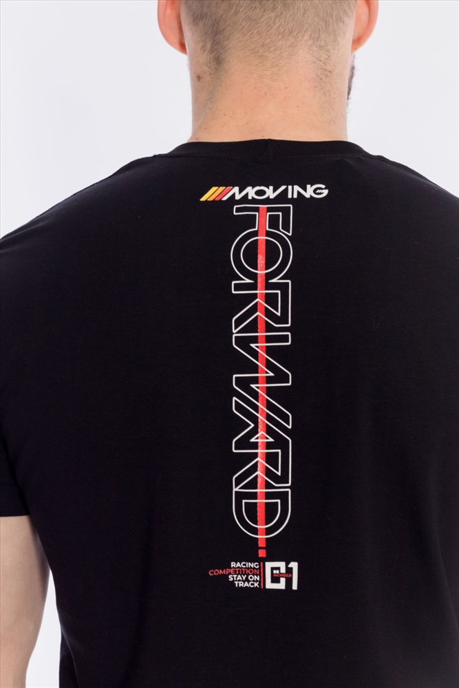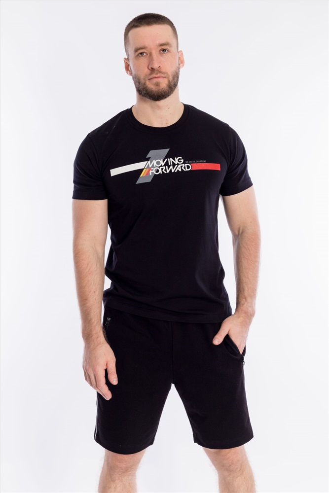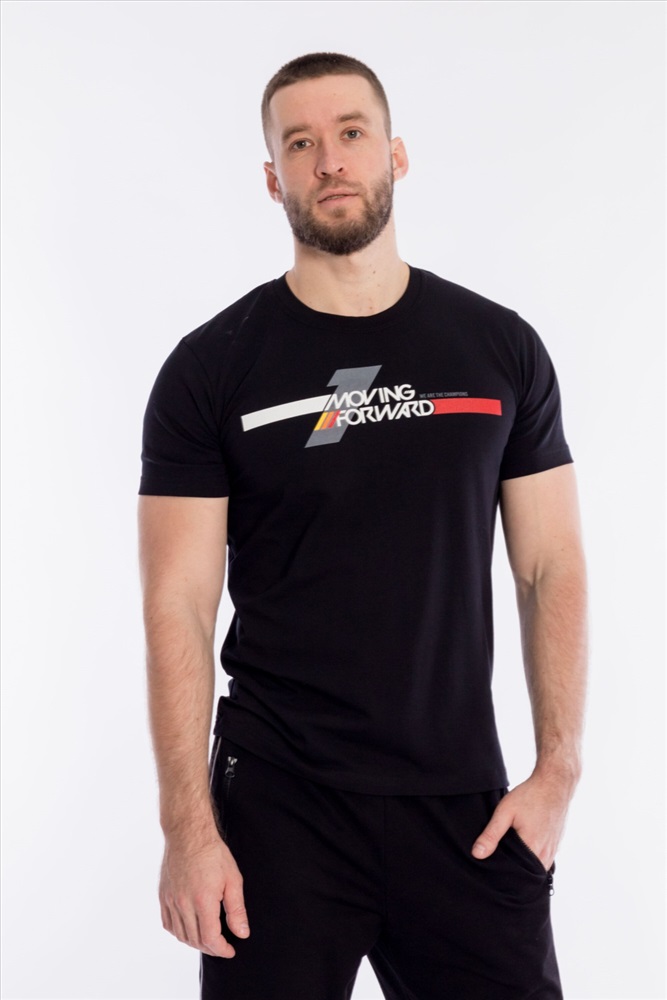 Сезон: Всесезонный Силуэт: Свободный Состав: Хлопок 95% Лайкра 5% Цвет Номенклатуры: черный Мужская футболка выполнена из х/б полотна с лайкрой. Рукав короткий, втачной, горловина имеет круглый вырез. Спереди и на спинке нанесён принт. Комментарии к товару