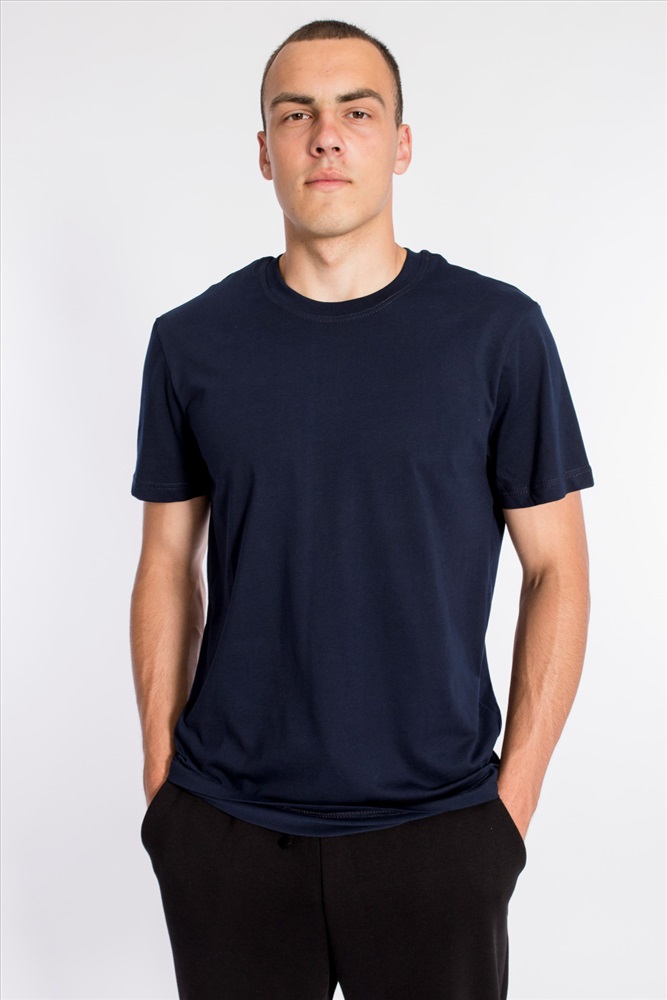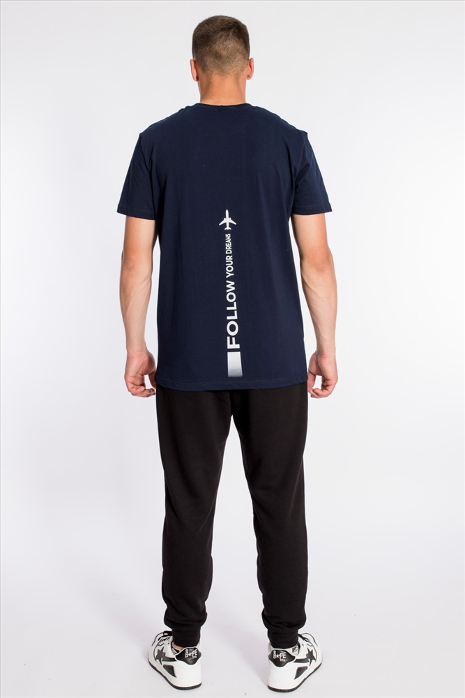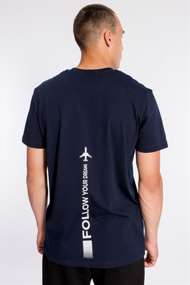 Сезон: Всесезонный Силуэт: Свободный Состав: Хлопок 100% Цвет Номенклатуры: синий Футболка свободного силуэта из однотонного х/б полотна. Планка круглого выреза горловины выполнена из рибаны. Сзади на футболке нанесён принт. Комментарии к товару