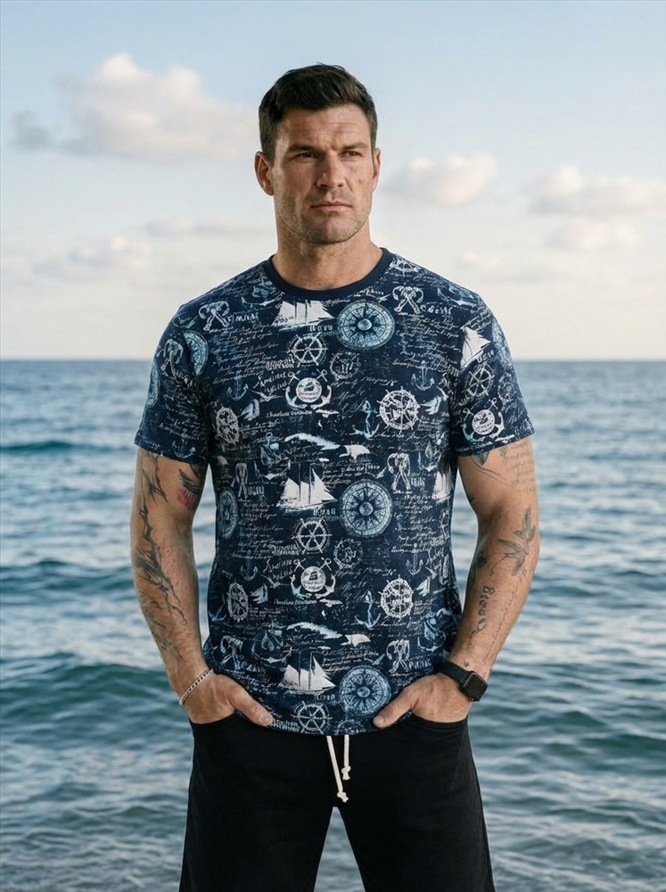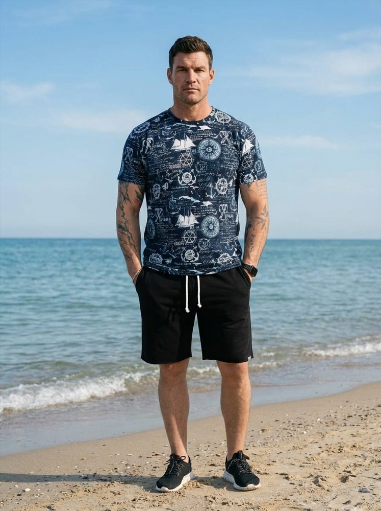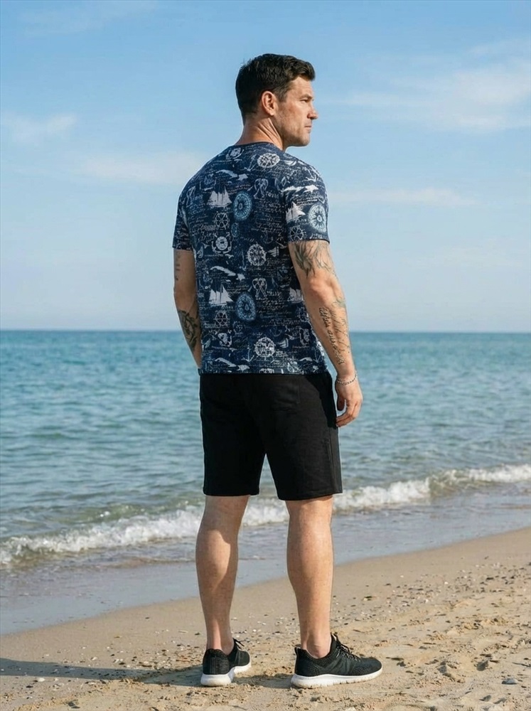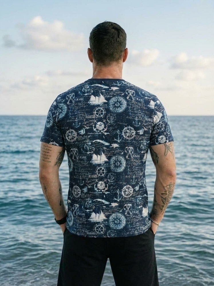 Сезон: Всесезонный Силуэт: Прямой Состав: Хлопок 100% Цвет Номенклатуры: синий/белый Мужская футболка выполнена из мягкого хлопкового полотна с набивным рисунком. Модель имеет прямой крой и слегка спущенный рукав, который обеспечивает комфортную посадку и современный силуэт. Круглая горловина оформлена в классическом варианте, что делает футболку универсальной и подходящей для повседневных образов. Легкая, удобная и практичная — она станет удачным выбором для ежедневной носки. Комментарии к товару